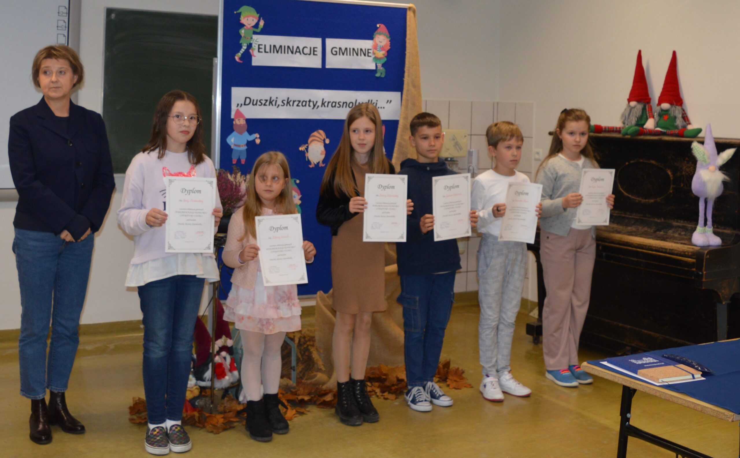 W dniu 12.11.2024 w Szkole Podstawowej w Kuryłówce odbyły się eliminacje gminne Podkarpackiego Konkursu „Literatura i Dzieci” pod hasłem „Duszki, skrzaty, krasnoludki”. Uczniowie prezentowali swoje talenty recytatorskie oraz wokalne, inspirowane światem baśni i fantastycznych postaci. Każdy występ był oryginalny, a mali artyści wykazali się kreatywnością i zaangażowaniem. Po długich naradach wyłoniono zwycięzców, którzy już w najbliższą środę, pojadą do Grodziska Dolnego reprezentować szkołę na dalszych etapach konkursu. Julian Szpetnar z klasy IV a – w kategorii recytacja oraz Alicja Szenborn z klasy III b i Lena Maszewska z klasy VI a – w kategorii piosenka. Jurorzy podkreślili wysoki poziom przygotowania i gratulowali wszystkim dzieciom odwagi oraz umiejętności. Eliminacje zakończyły się wręczeniem dyplomów oraz skromnych upominków. Dziękujemy uczestnikom, nauczycielom oraz publiczności za wspaniałą atmosferę, a zwycięzcom życzymy powodzenia i dalszych sukcesów w kolejnych etapach.