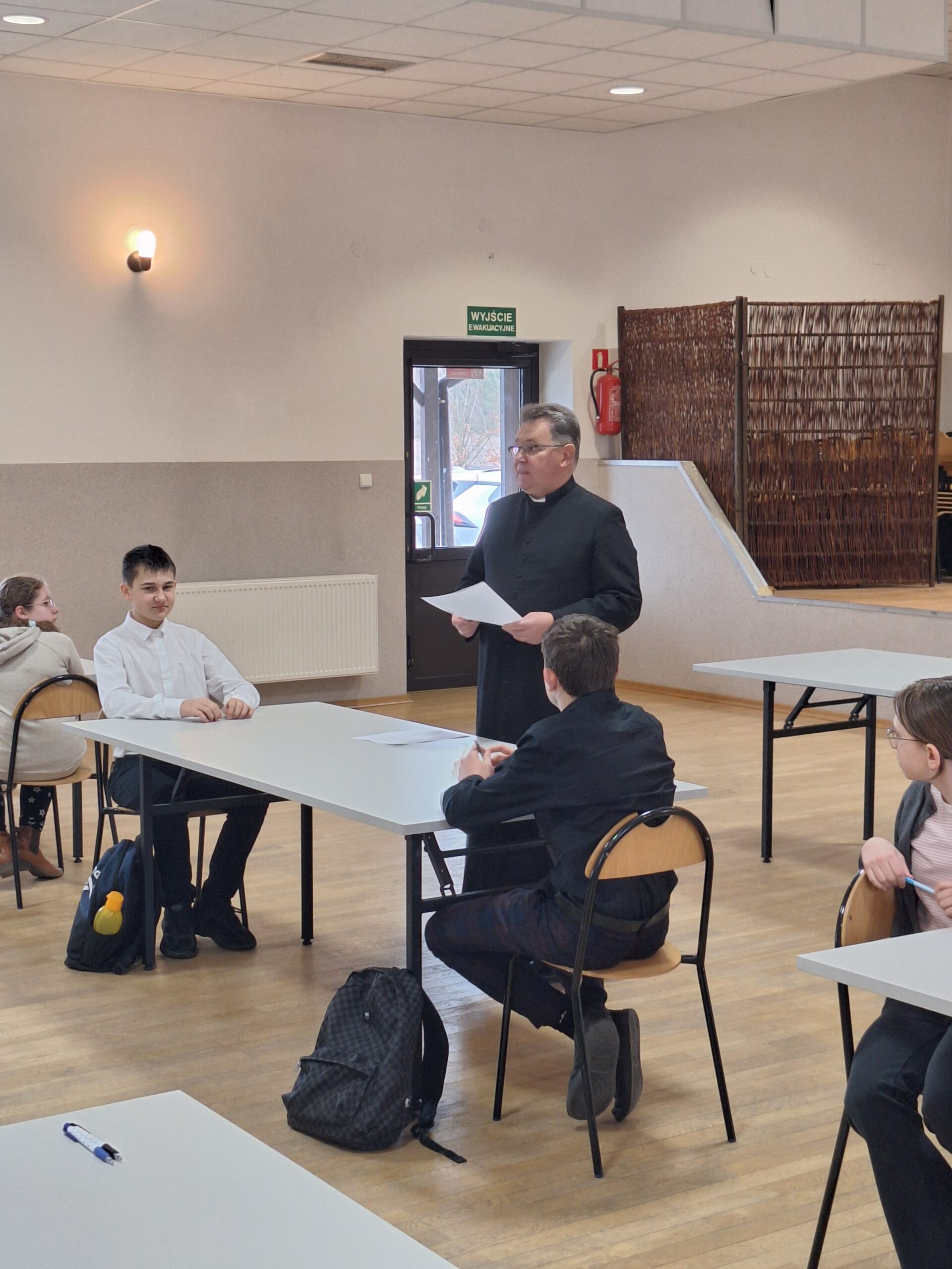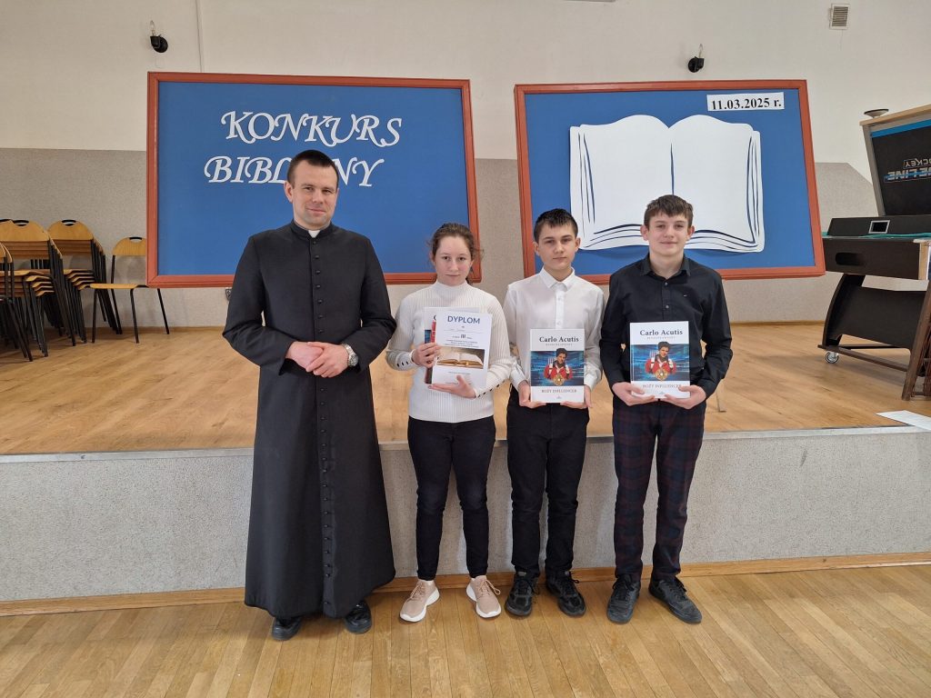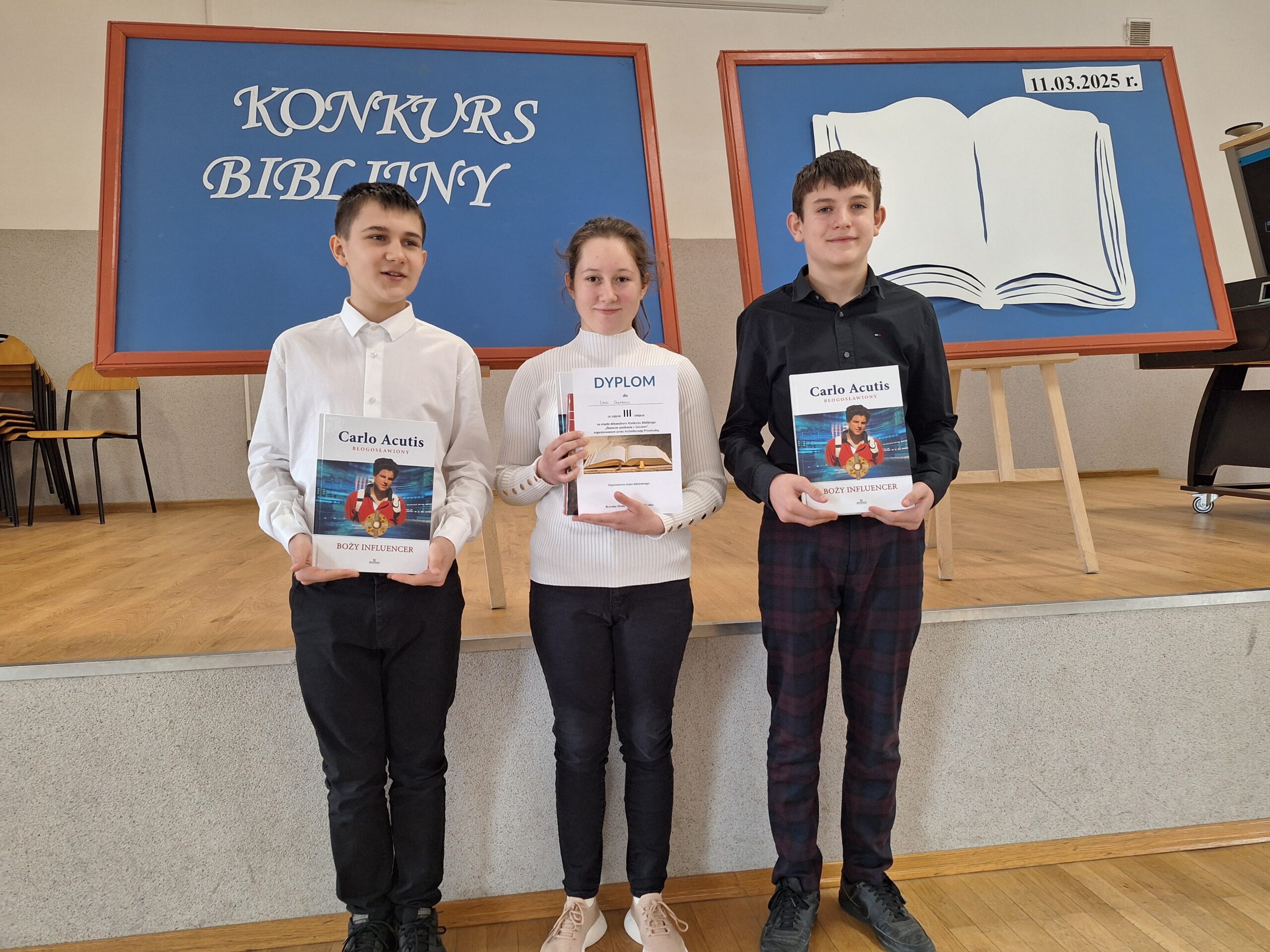 11 marca 2025 roku odbył się dekanalny (gminny) etap Konkursu Biblijnego w Domu Kultury w Brzyskiej Woli. W konkursie wzięło udział ponad 30 uczniów – przedstawicieli szkół podstawowych, wyłonionych w etapie szkolnym. Szkołę Podstawową w Kuryłówce reprezentowali: Lena Garbacz, Mateusz Tokarz oraz Kacper Kycia. Z radością informujemy, że nasza uczennica Lena Garbacz zajęła trzecie miejsce, tym samym awansując do Wielkiego Finału Konkursu Biblijnego, który odbędzie się w Wyższym Seminarium Duchownym w Przemyślu. Wszystkim uczestnikom składamy gratulacje, dziękując za godne reprezentowanie naszej szkoły! Lenie zaś życzymy owocnej lektury Słowa Bożego związanej z finałem konkursu.
