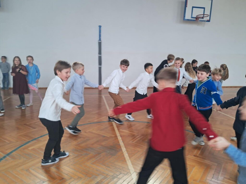 Uczniowie klas 1–3 wzięli udział w radosnej zabawie andrzejkowej pełnej magii i uśmiechu. Mieli okazję pobawić się na sali gimnastycznej wraz z DJ – uczniami naszej szkoły z kl. 7 – Pawłem Błońskim i Jakubem Majkutem, którzy zadbali o muzykę i taneczną atmosferę, zachęcając dzieci do wspólnych pląsów. Nie zabrakło także tradycyjnych wróżb, takich jak losowanie zawodów czy magicznych serduszek z imionami przyszłych wybranków. Wszystkie aktywności miały formę wesołej zabawy i były dostosowane do wieku uczniów. W tym dniu odbył się także kiermasz babeczek z wróżbami, każdy mógł się poczęstować i wylosować dla siebie przepowiednie Andrzejki były doskonałą okazją do integracji i wspólnego świętowania, pozostawiając wiele miłych wspomnień.
