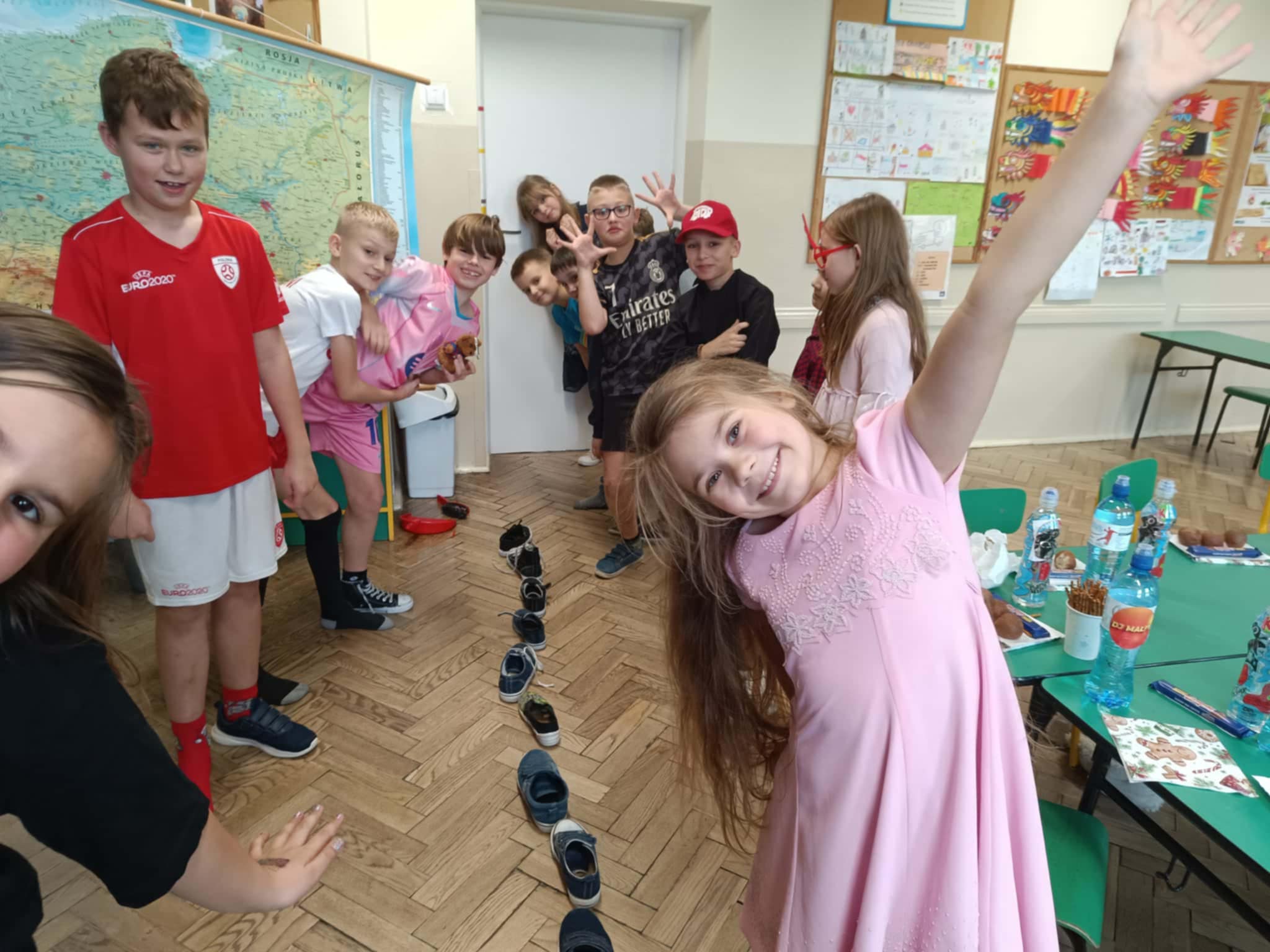 Uczniowie klas 1–3 wzięli udział w radosnej zabawie andrzejkowej pełnej magii i uśmiechu. Mieli okazję pobawić się na sali gimnastycznej wraz z DJ – uczniami naszej szkoły z kl. 7 – Pawłem Błońskim i Jakubem Majkutem, którzy zadbali o muzykę i taneczną atmosferę, zachęcając dzieci do wspólnych pląsów. Nie zabrakło także tradycyjnych wróżb, takich jak losowanie zawodów czy magicznych serduszek z imionami przyszłych wybranków. Wszystkie aktywności miały formę wesołej zabawy i były dostosowane do wieku uczniów. W tym dniu odbył się także kiermasz babeczek z wróżbami, każdy mógł się poczęstować i wylosować dla siebie przepowiednie Andrzejki były doskonałą okazją do integracji i wspólnego świętowania, pozostawiając wiele miłych wspomnień.