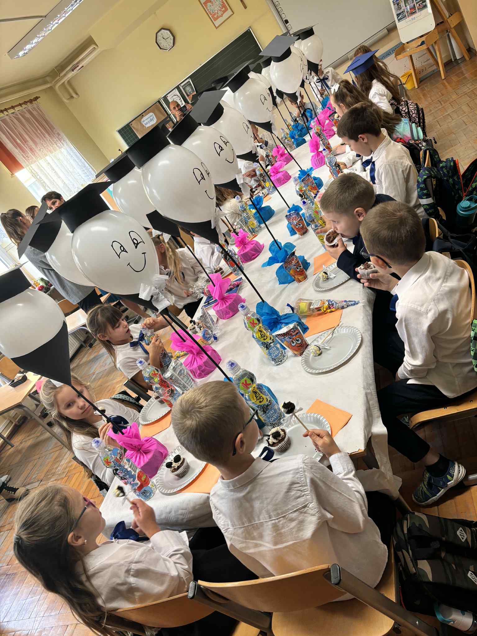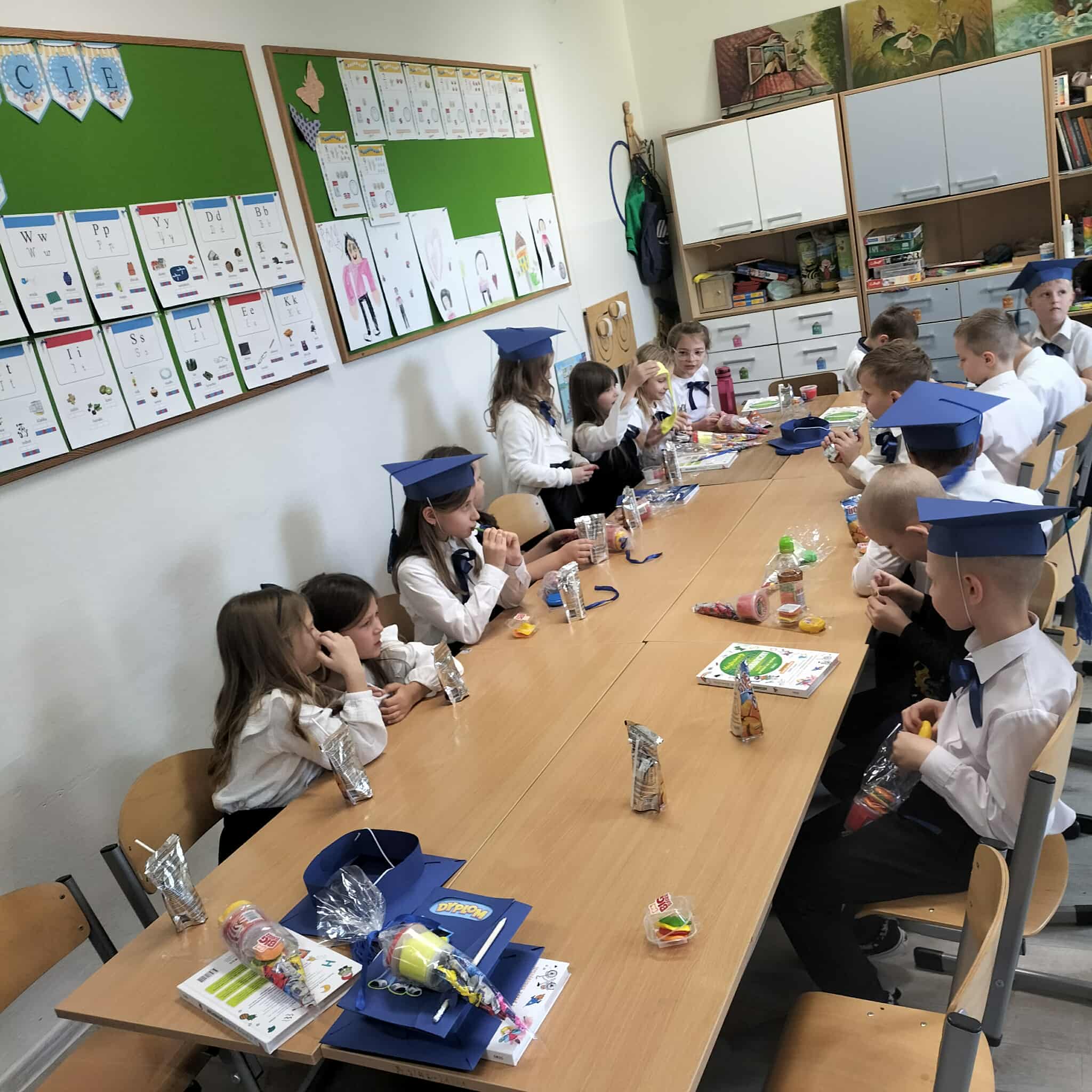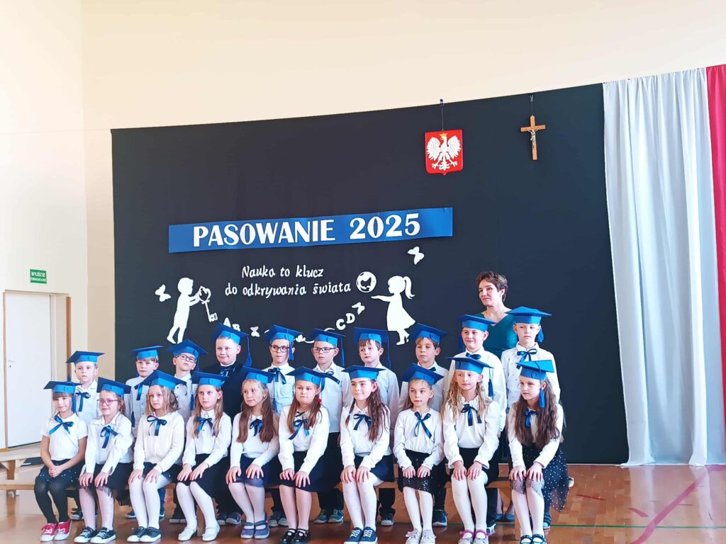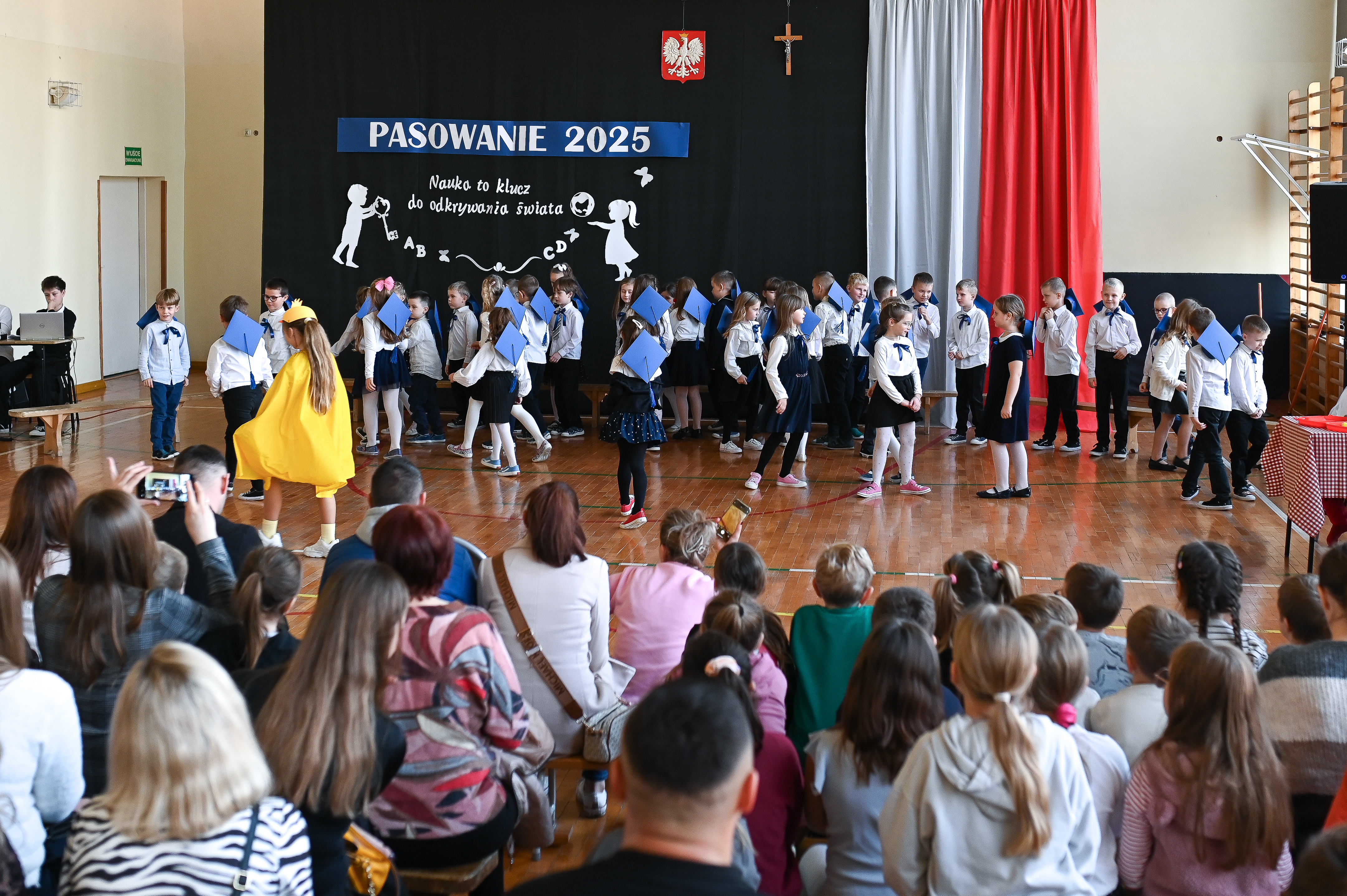 Tegoroczne pasowanie uczniów klasy pierwszej było wydarzeniem pełnym wzruszeń, radości i śmiechu! Wszystko dzięki uczniom klasy 4b, którzy pod opieką p. Liliany Kani – Zawieruckiej przygotowali dla młodszych kolegów zabawne przedstawienie o skradzionym ołówku pt.: „Ołówek do pasowania”. Po przedstawieniu nastąpił najważniejszy moment uroczystości. Pani Dyrektor Janina Paja pasowała każdego pierwszaka na ucznia, dotykając ramienia dużym, kolorowym ołówkiem – już tym prawdziwym i odnalezionym. Rodzice, nauczyciele i starsi koledzy nagrodzili debiutantów wielkimi brawami, a uczniowie 4b odebrali zasłużone podziękowania za przygotowanie niezapomnianej oprawy. Pasowanie klasy pierwszej to jedna z najważniejszych chwil w szkolnym życiu. Dzięki zaangażowaniu starszych uczniów tegoroczna uroczystość przebiegła w wyjątkowo ciepłej i radosnej atmosferze. Po części artystycznej uczniowie wraz z rodzicami udali się do klas na wspólne świętowanie.