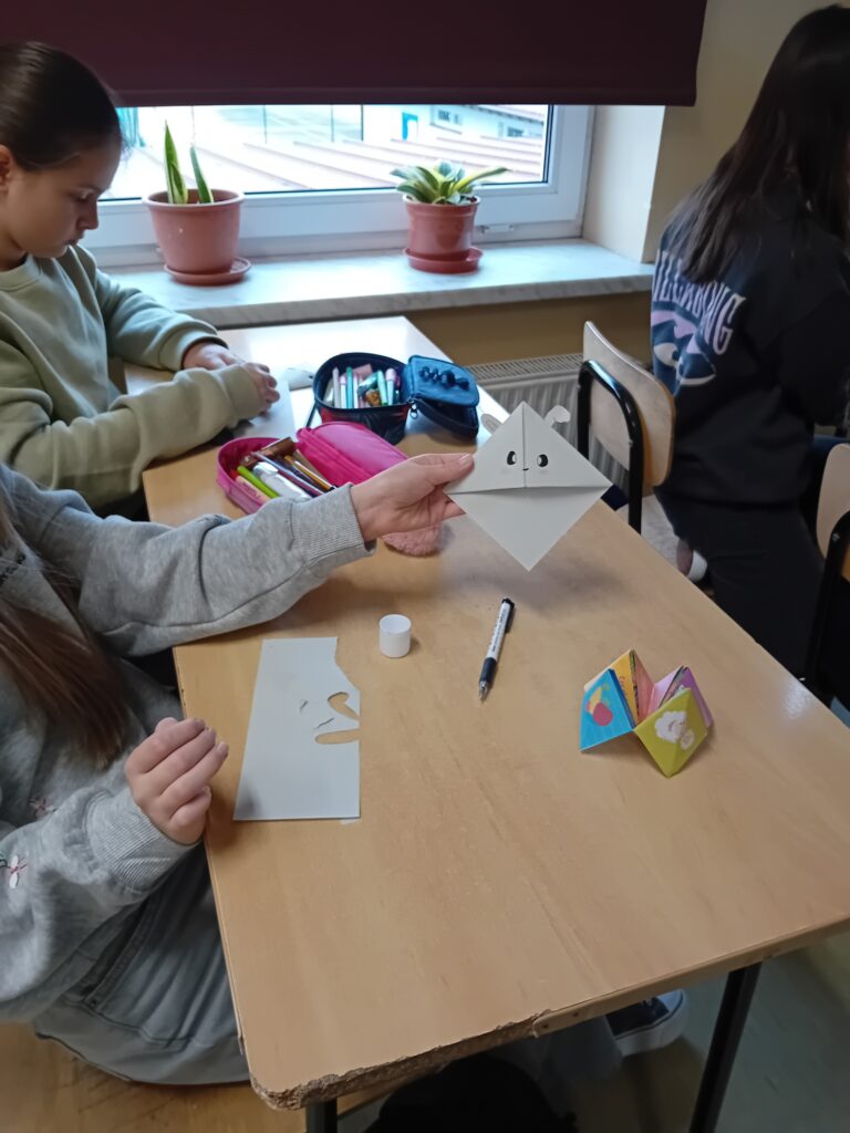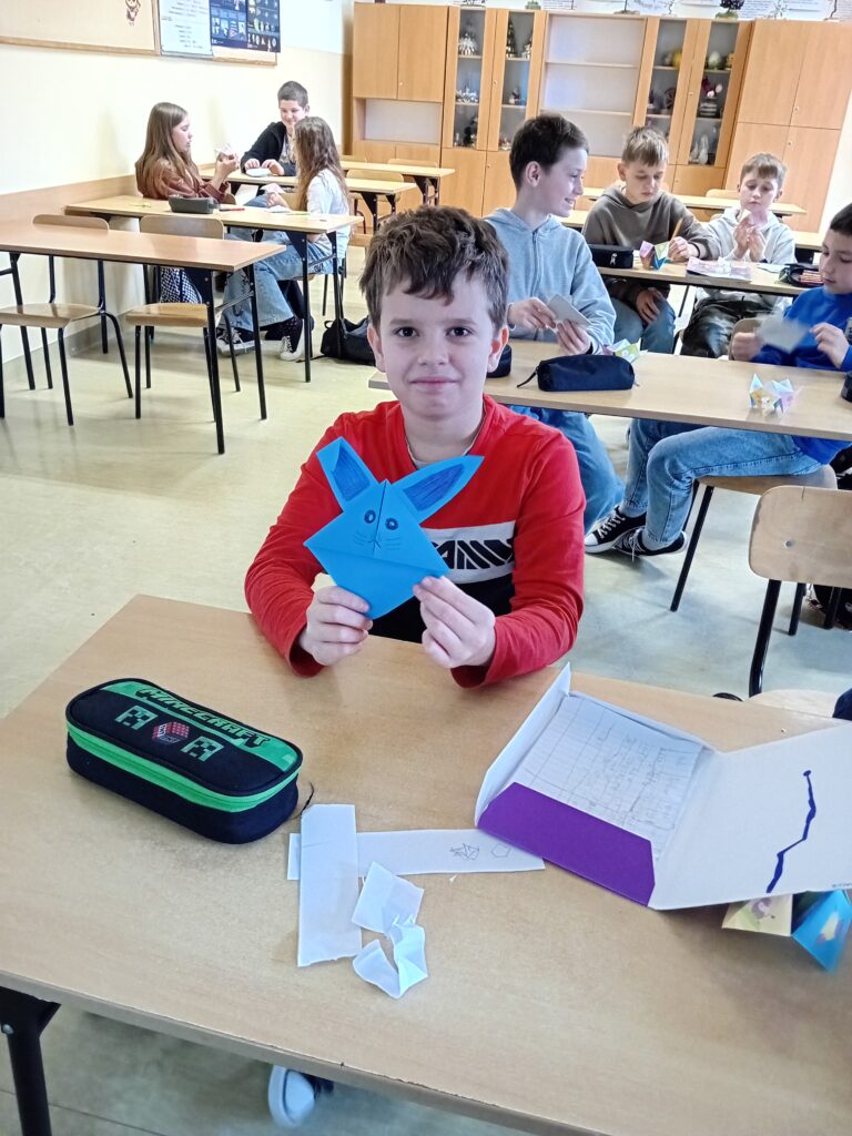 Uczniowie klas 5a, 6a i 6b wzięli udział w wyjątkowym wydarzeniu –Światowych Dniach Origami, organizowanych we współpracy z Europe Direct Rzeszów, których koordynatorkami były panie J. Marczak-Szpyt i J. Mach. Tworzenie origami to nie tylko przyjemność, ale także szereg korzyści dla umysłu i ciała. Wykonywanie złożonych modeli rozwija zdolności manualne i wzmacnia kreatywność. Proces składania wymaga koncentracji, co sprawia, że origami jest także formą relaksu Podczas warsztatów uczniowie mieli okazję rozwijać swoje umiejętności plastyczne, tworząc zakładki do książek oraz różnorodne figurki origami. To inspirujące wydarzenie pozwoliło młodzieży nie tylko na świetną zabawę, ale także na poznanie tajników tej ciekawej sztuki.