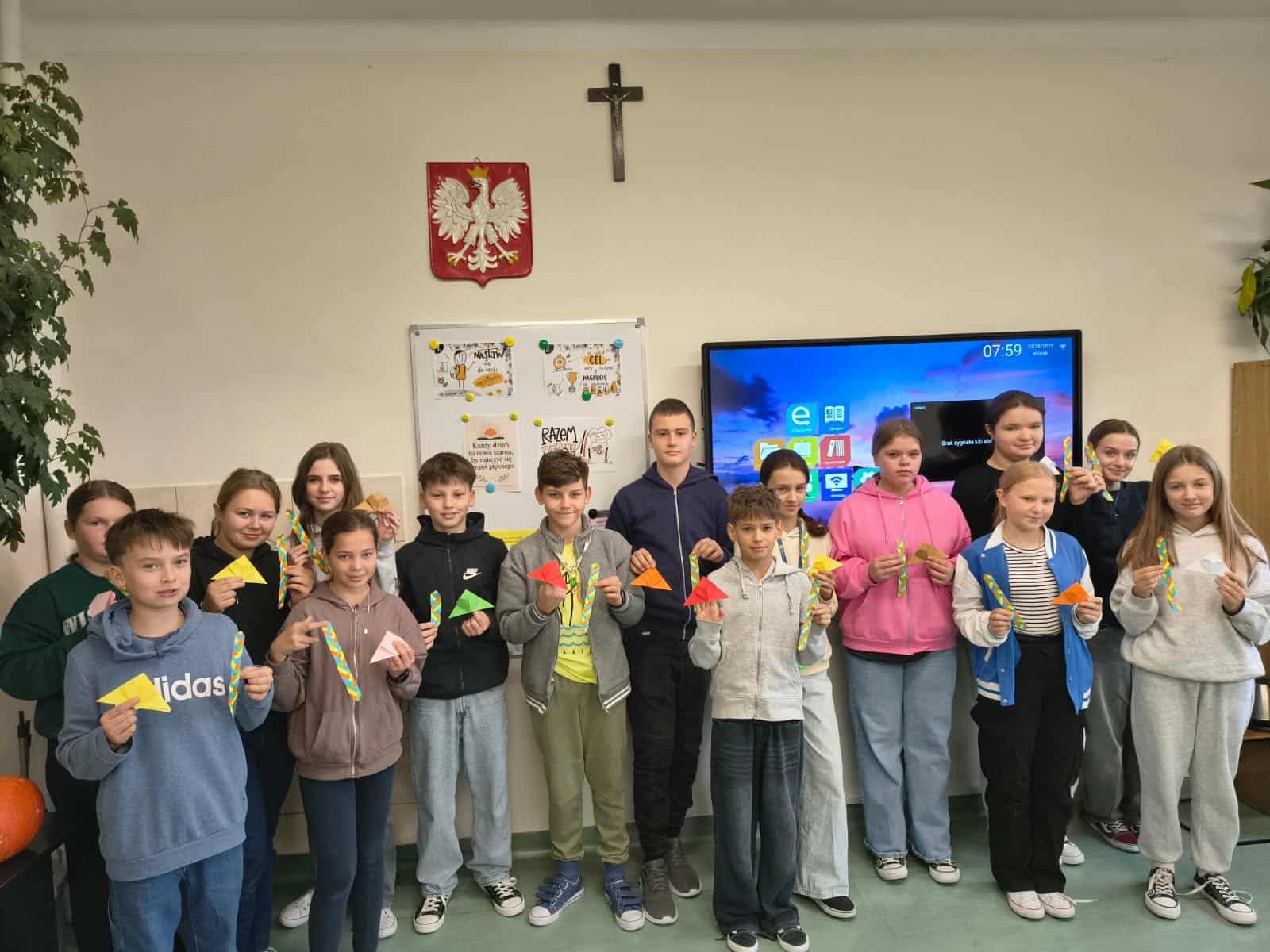 Uczniowie klas 5a, 6a i 6b wzięli udział w wyjątkowym wydarzeniu –Światowych Dniach Origami, organizowanych we współpracy z Europe Direct Rzeszów, których koordynatorkami były panie J. Marczak-Szpyt i J. Mach. Tworzenie origami to nie tylko przyjemność, ale także szereg korzyści dla umysłu i ciała. Wykonywanie złożonych modeli rozwija zdolności manualne i wzmacnia kreatywność. Proces składania wymaga koncentracji, co sprawia, że origami jest także formą relaksu Podczas warsztatów uczniowie mieli okazję rozwijać swoje umiejętności plastyczne, tworząc zakładki do książek oraz różnorodne figurki origami. To inspirujące wydarzenie pozwoliło młodzieży nie tylko na świetną zabawę, ale także na poznanie tajników tej ciekawej sztuki.
