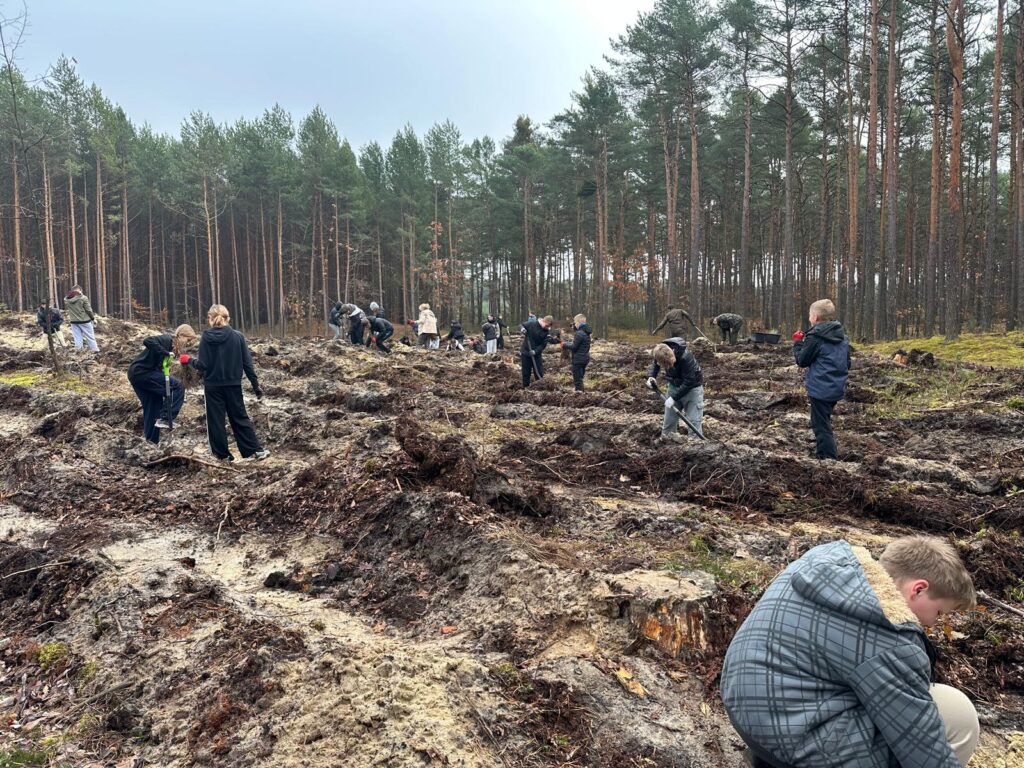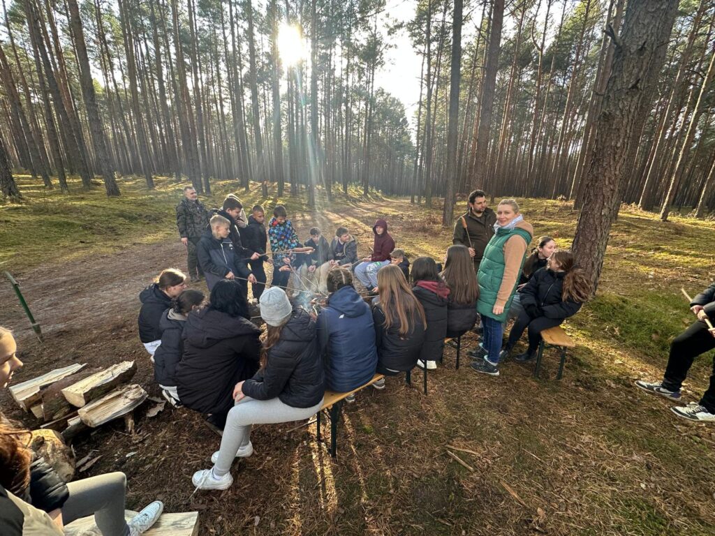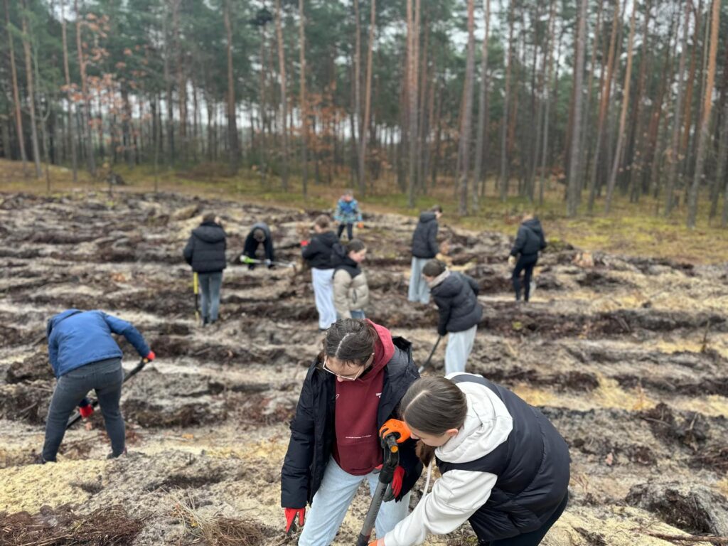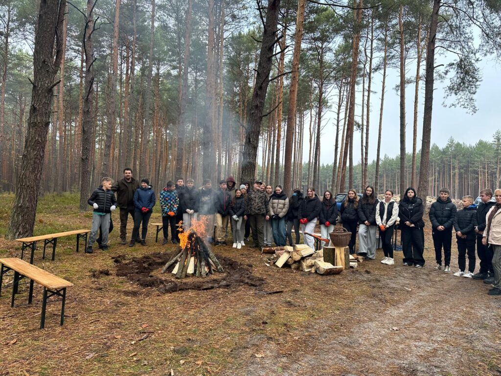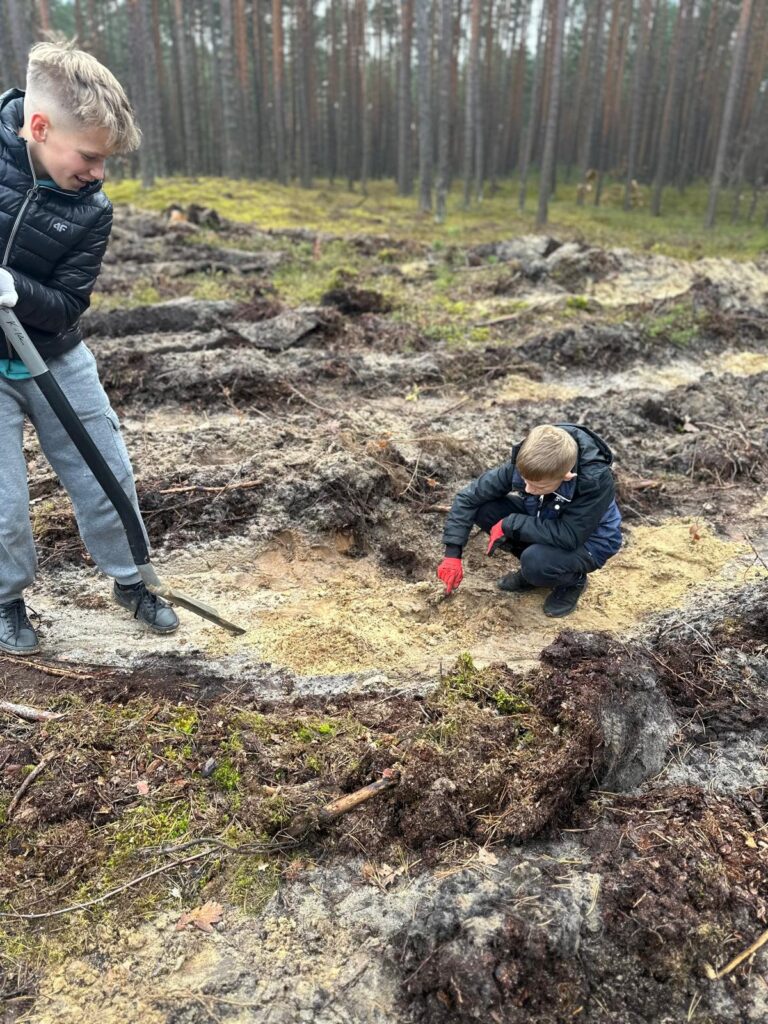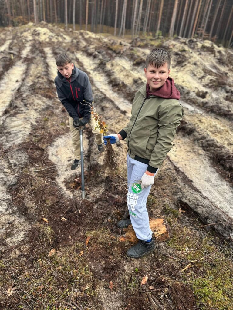 Fragment tego wiersza oddaje w pełni klimat jaki poczuliśmy podczas ostatniej wycieczki do lasu. W pierwszych dniach listopada członkowie szkolnego koła Ligi Ochrony Przyrody Szkoły Podstawowej w Kuryłówce wzięli udział w niezwykłej, żywej lekcji przyrody. Wspólnie z pracownikami Gminy Kuryłówka – panem Robertem Skibą – gajowym, panem Janem Lewkowiczem – specjalistą do spraw lasów gminnych oraz opiekunkami panią Janiną Paja i panią Katarzyną Stawowy– młodzi miłośnicy natury posadzili 1000 drzewek dwóch rodzimych gatunków: dębu i buka. To przedsięwzięcie miało na celu wzbogacić lokalny krajobraz a jednocześnie stało się okazją do rozmów o znaczeniu lasów, ekologii i troski o środowisko. Uczniowie sadząc drzewka uczyli się, jak ważna jest każda nowa sadzonka i jak duży wpływ mają wspólne działania na przyszłość przyrody. Zalesianie terenów ma ogromne znaczenie dla równowagi ekologicznej. Lasy oczyszczają powietrze, zatrzymują wodę, chronią glebę przed erozją i są domem dla niezliczonych gatunków roślin i zwierząt. Stanowią także naturalną barierę przeciw hałasowi i wiatrom, a przede wszystkim – są źródłem tlenu, bez którego nie mogłoby istnieć życie. Sadząc drzewa, człowiek nie tylko dba o środowisko, ale również inwestuje w przyszłość – swoją i kolejnych pokoleń. Po zakończonej pracy uczestnicy zasłużenie odpoczęli przy rozpalonym ognisku, piekąc kiełbaski i dzieląc się wrażeniami z minionego dnia. Pamiętajmy że troska o naturę zaczyna się od prostych gestów – od posadzenia jednego drzewa, które kiedyś stanie się częścią tajemniczego, szumiącego lasu.