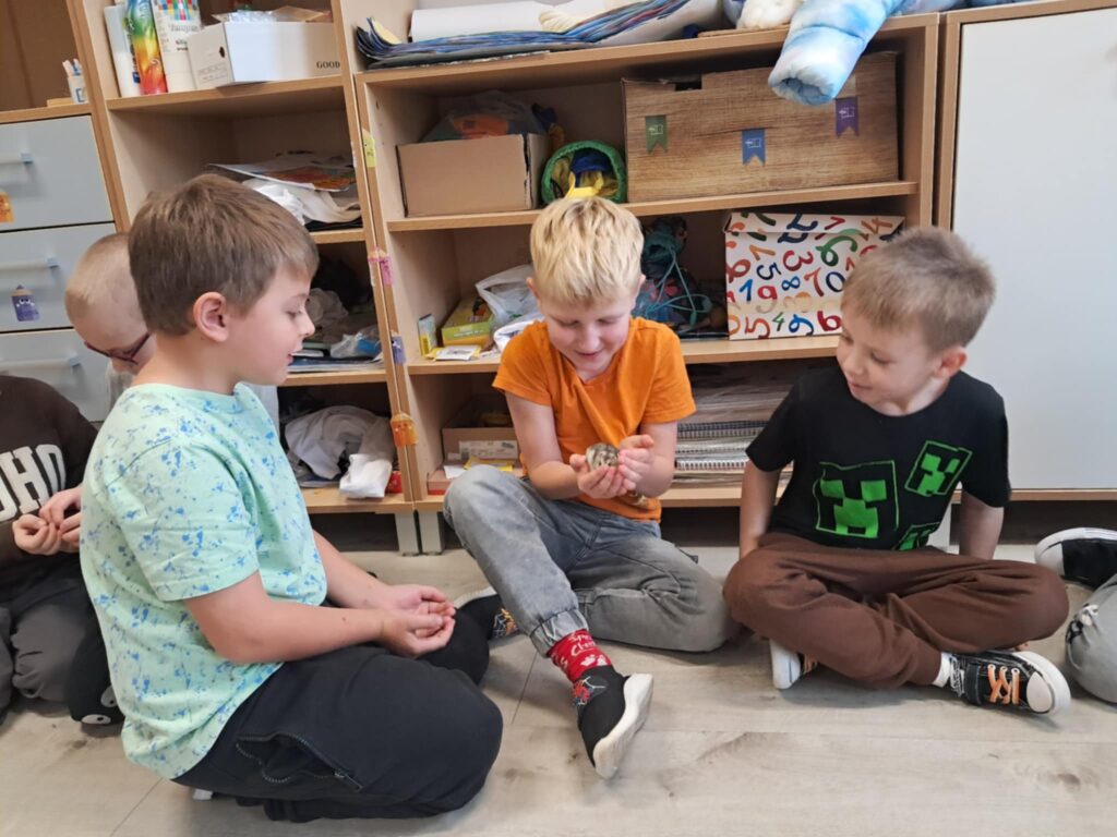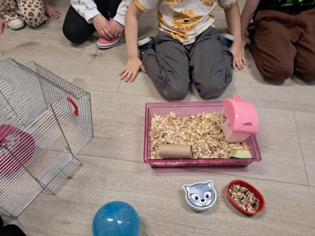 W klasie 1 odbyła się wyjątkowa lekcja, podczas której uczniowie poznali małego, puszystego gościa – chomika o imieniu Iskierka. Spotkanie było częścią zajęć o zwierzętach domowych i wzbudziło wśród dzieci ogromne zainteresowanie. Już na początku uczniowie przypomnieli sobie zasady bezpiecznego zachowania przy zwierzętach: cicho mówimy, nie dotykamy bez zgody i dbamy o spokój małego przyjaciela. Gdy chomik pojawił się w sali, dzieci z zapartym tchem obserwowały, jak ostrożnie wygląda ze swojego domku i rusza wąsikami, badając nowe otoczenie. Podczas zajęć pierwszoklasiści poznali ciekawostki o życiu chomików: dowiedzieli się, co jedzą, kiedy są najbardziej aktywne oraz dlaczego chowają jedzenie w policzkach. Uczniowie wykonali także zadania edukacyjne oraz zrobili chomika z papieru. Najważniejszym celem lekcji było jednak budowanie empatii i odpowiedzialności. Spotkanie z Iskierką przyniosło wiele radości i stało się inspirującą lekcją o świecie zwierząt. To wydarzenie na długo pozostanie w pamięci pierwszoklasistów!