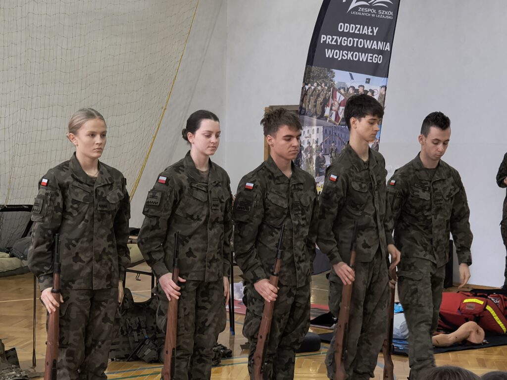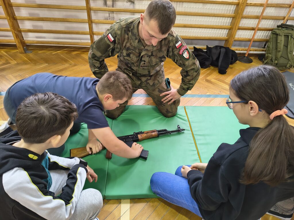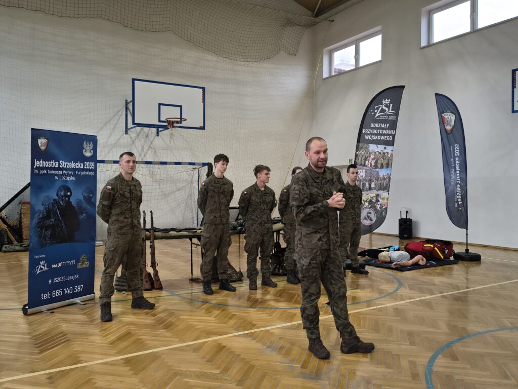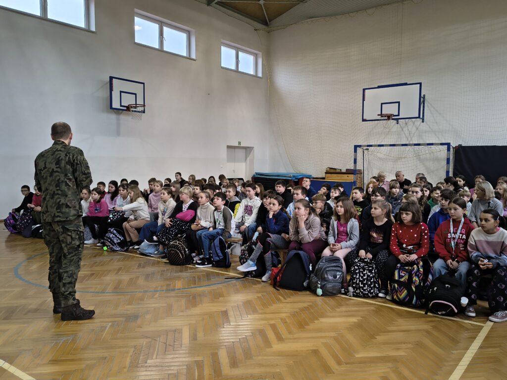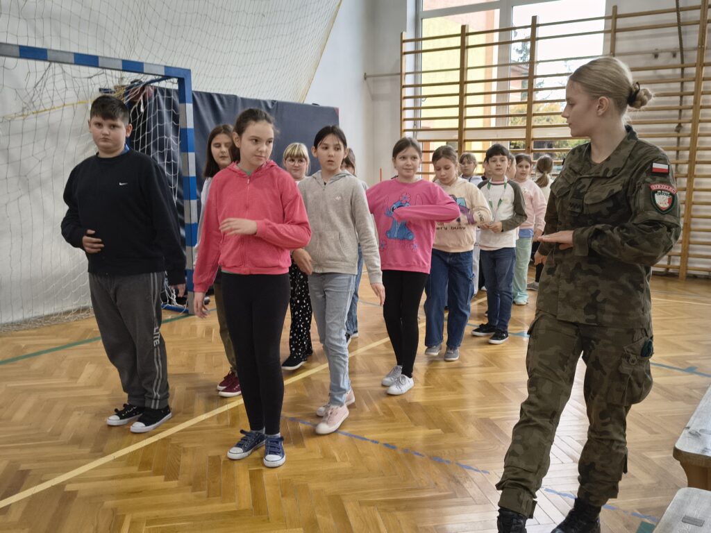 W czwartek 3 grudnia odbyło się ciekawe szkolenie praktyczne dla uczniów z klas: 4,5 i 6 przeprowadzonych przez nauczycieli i uczniów Oddziałów Przygotowania Wojskowego Zespołu Szkół Licealnych w Leżajsku. Z wielką pasją zaprezentowali umiejętności zdobywane podczas codziennej nauki i ćwiczeń. W czasie szkolenia uczniowie uczestniczyli w warsztatach z udzielania pierwszej pomocy przedmedycznej. Kolejnym punktem były zajęcia z musztry wojskowej oraz bezpiecznego posługiwania się bronią palną, prowadzone zgodnie z wojskowymi procedurami szkoleniowymi. Uczniowie zaprezentowali również efektowną musztrę paradną do muzyki, pokazując precyzję, dyscyplinę i zgranie drużyny. W trakcie wydarzenia nauczyciele oraz uczniowie opowiadali o specyfice funkcjonowania klas wojskowych w szkole, o możliwościach, jakie otwierają się przed absolwentami oraz o ścieżkach kariery w służbach mundurowych.