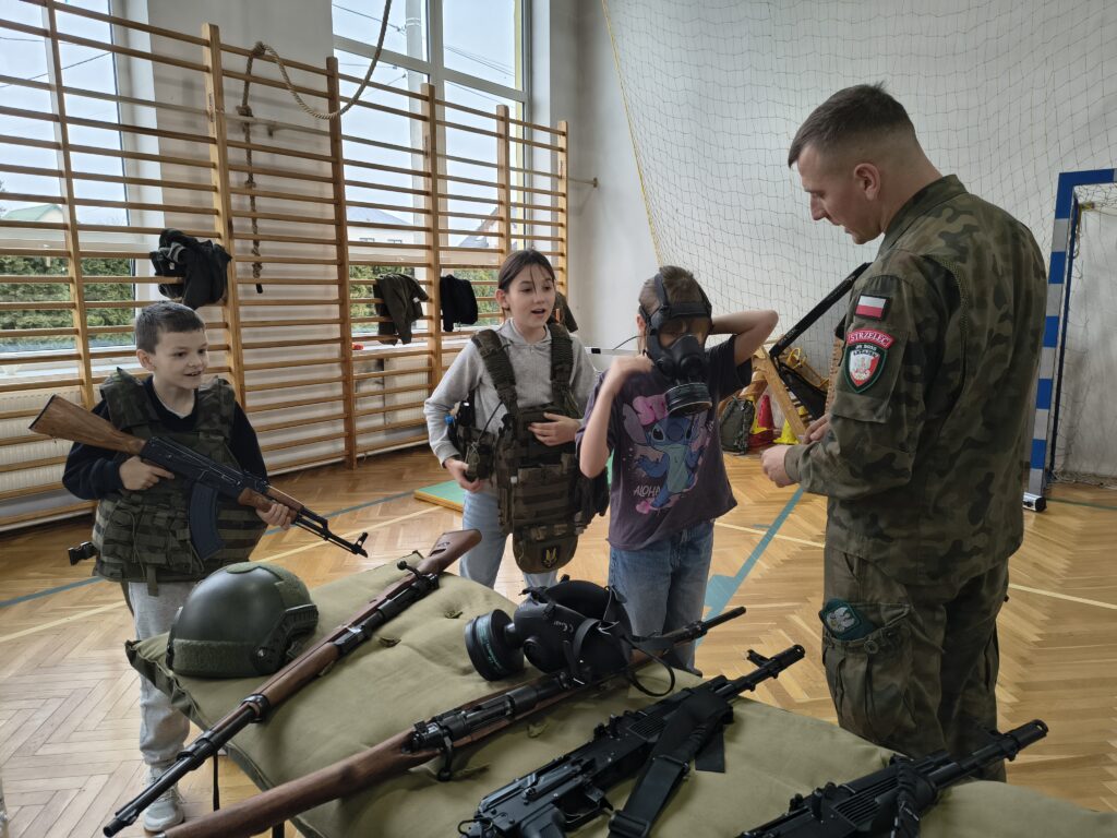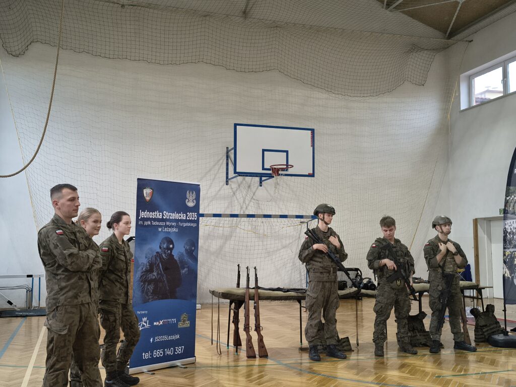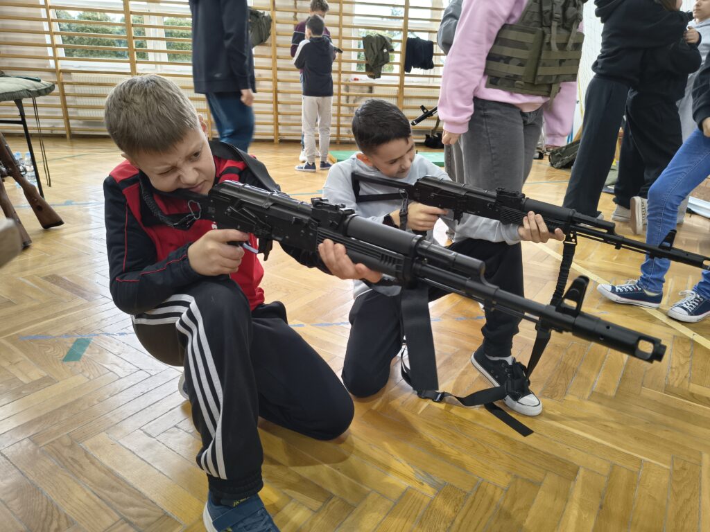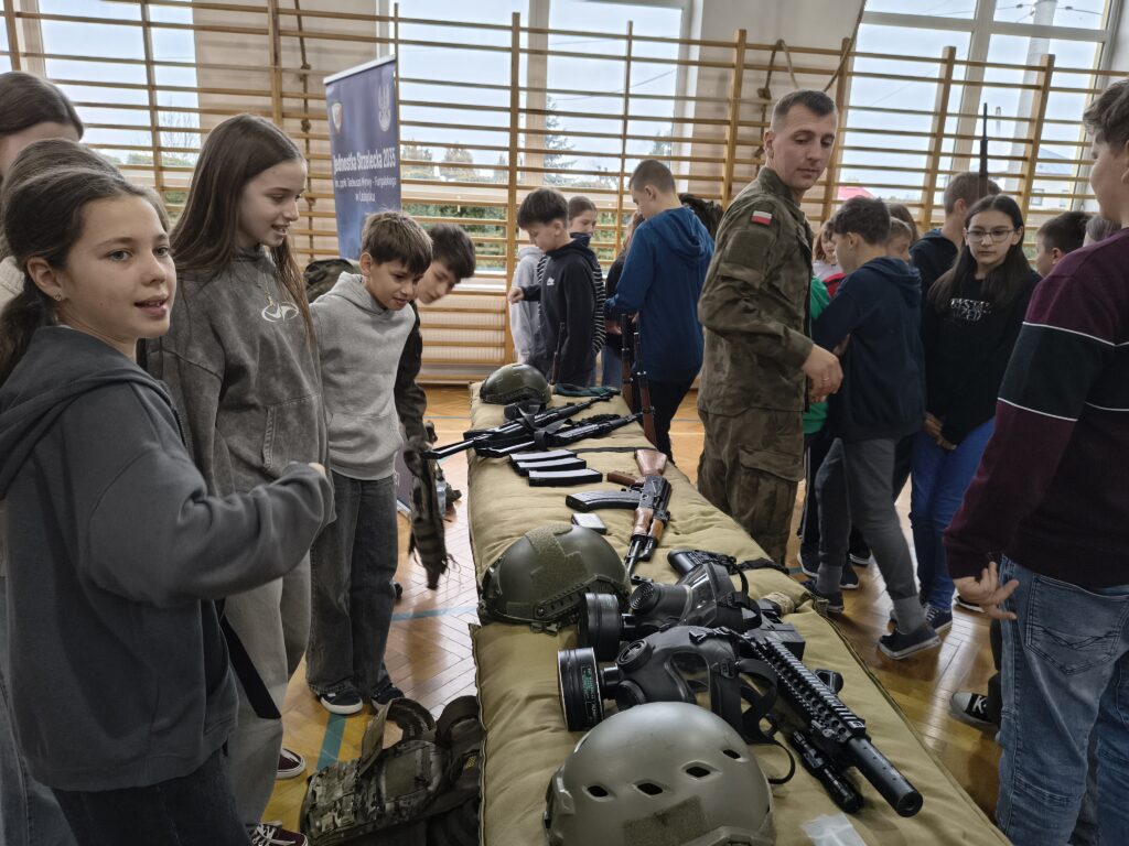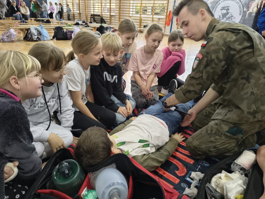W czwartek 3 grudnia odbyło się ciekawe szkolenie praktyczne dla uczniów z klas: 4,5 i 6 przeprowadzonych przez nauczycieli i uczniów Oddziałów Przygotowania Wojskowego Zespołu Szkół Licealnych w Leżajsku. Z wielką pasją zaprezentowali umiejętności zdobywane podczas codziennej nauki i ćwiczeń. W czasie szkolenia uczniowie uczestniczyli w warsztatach z udzielania pierwszej pomocy przedmedycznej. Kolejnym punktem były zajęcia z musztry wojskowej oraz bezpiecznego posługiwania się bronią palną, prowadzone zgodnie z wojskowymi procedurami szkoleniowymi. Uczniowie zaprezentowali również efektowną musztrę paradną do muzyki, pokazując precyzję, dyscyplinę i zgranie drużyny. W trakcie wydarzenia nauczyciele oraz uczniowie opowiadali o specyfice funkcjonowania klas wojskowych w szkole, o możliwościach, jakie otwierają się przed absolwentami oraz o ścieżkach kariery w służbach mundurowych.