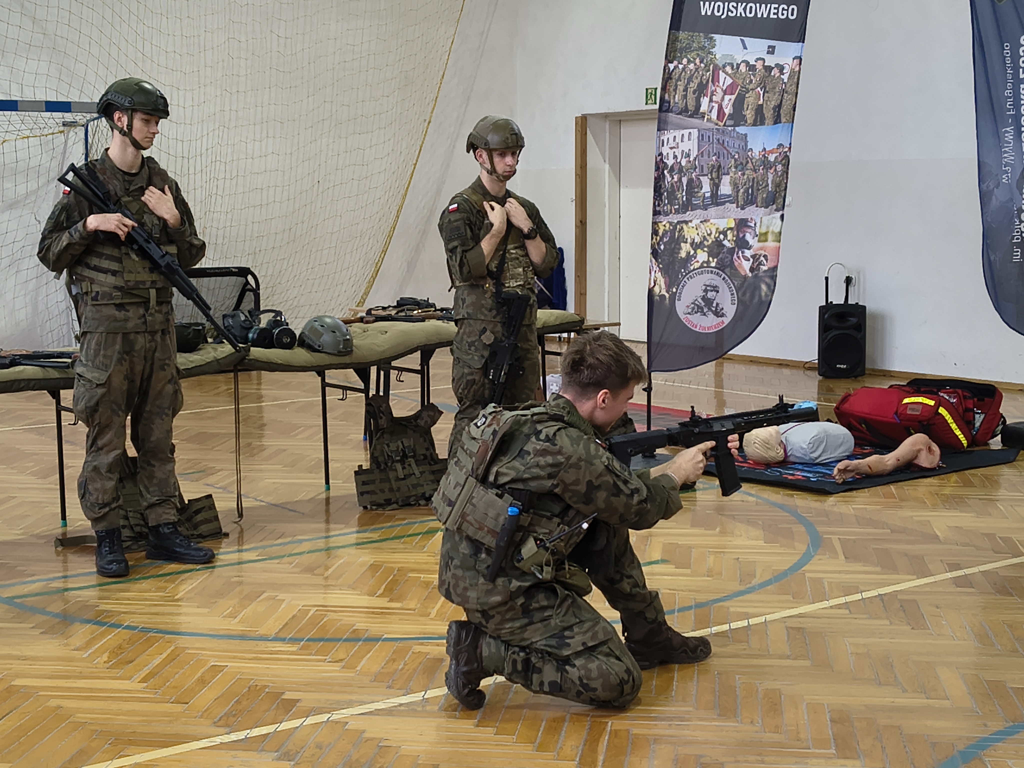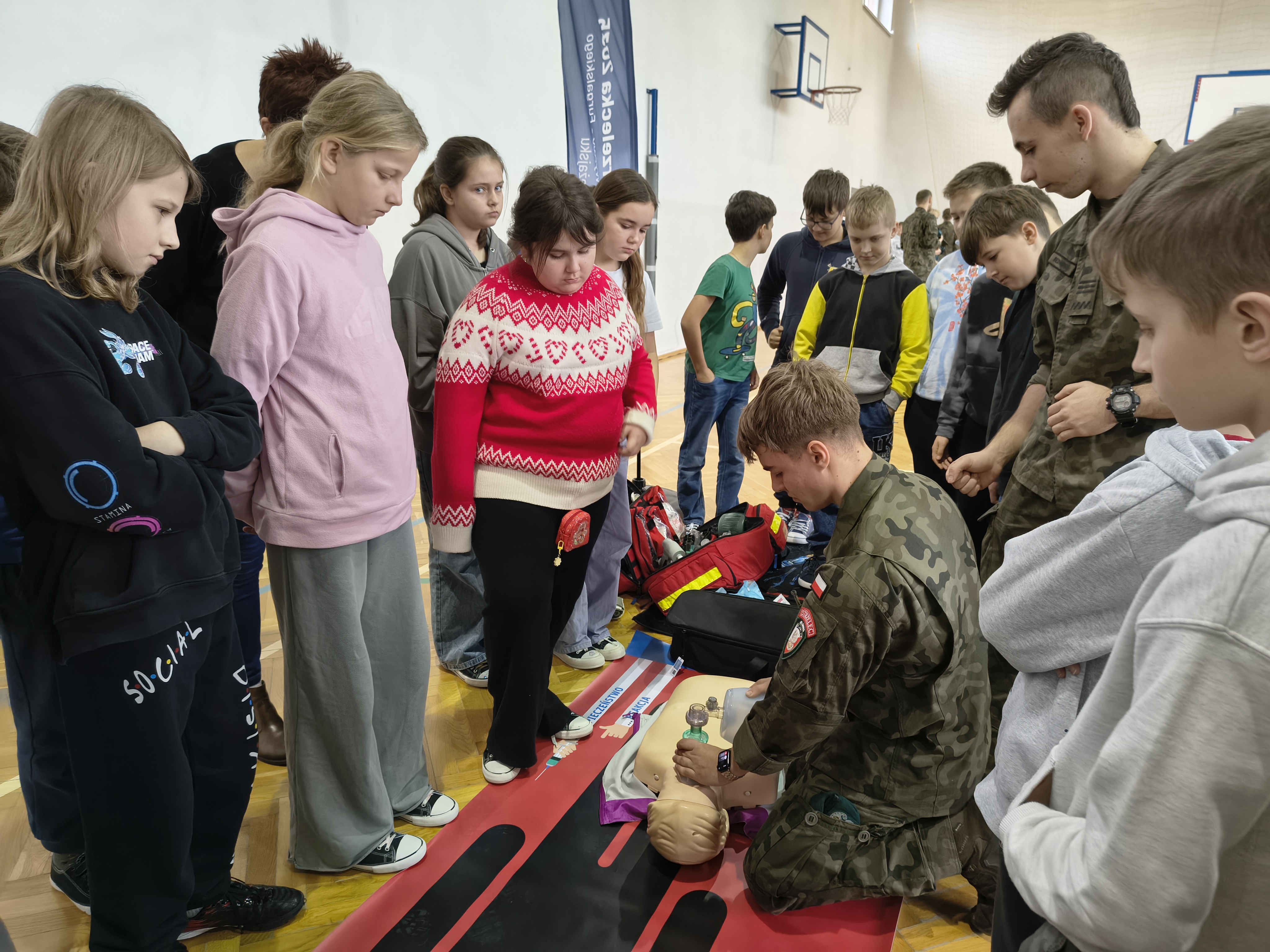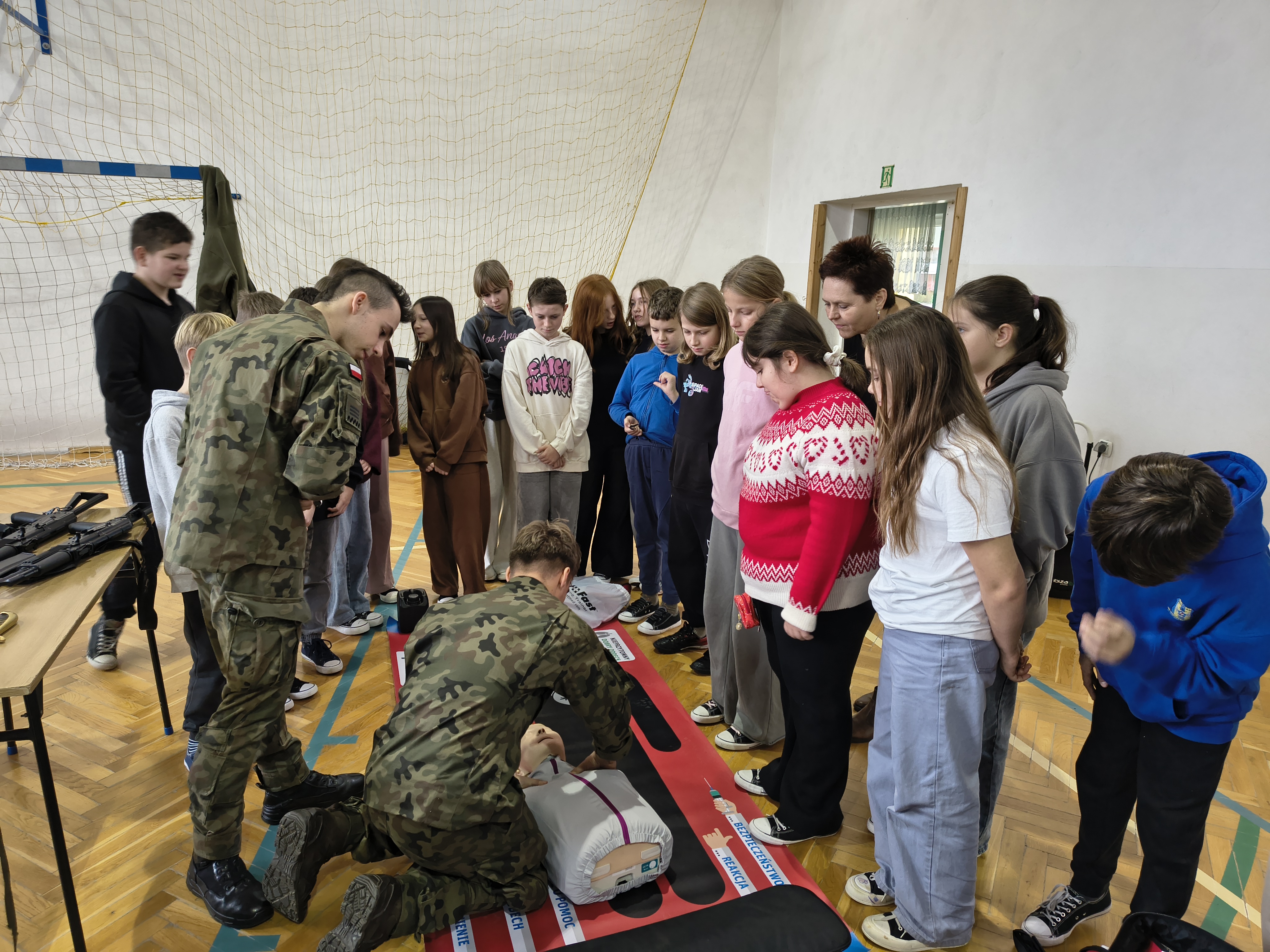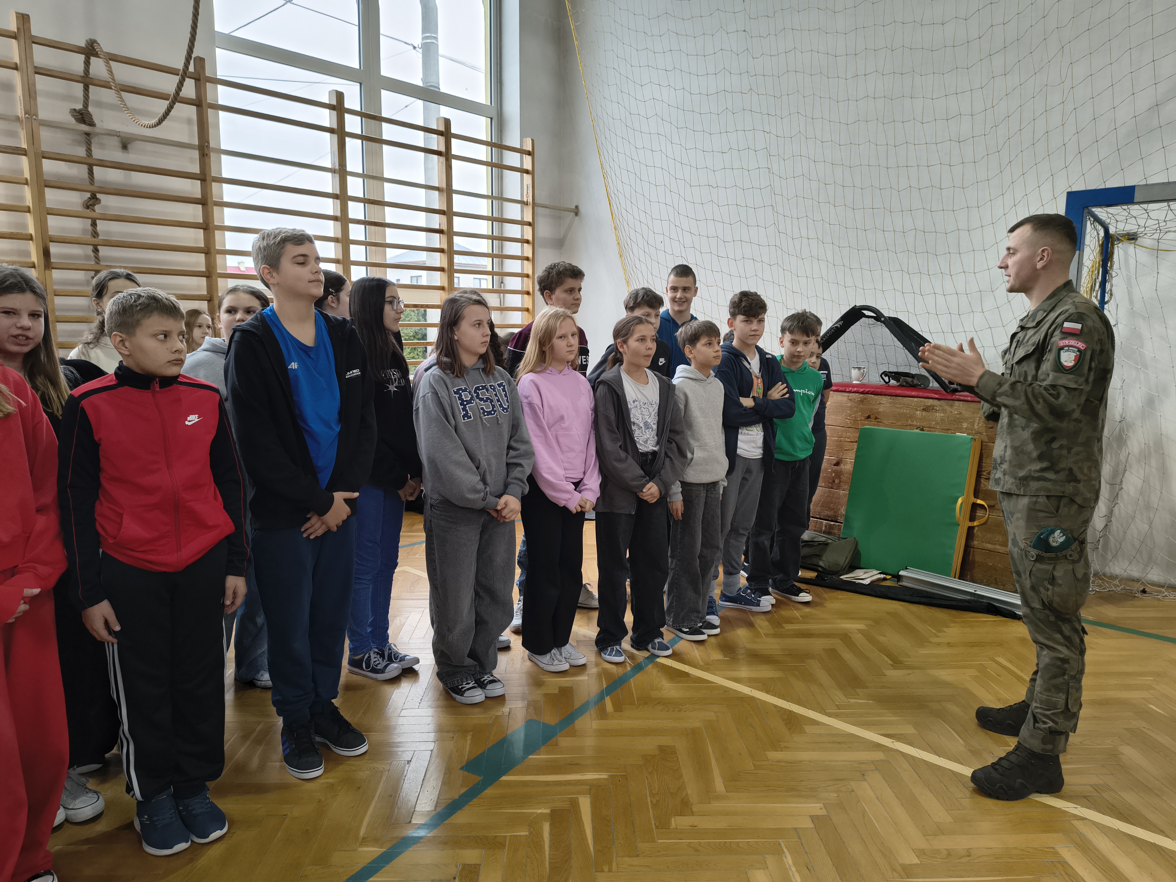 W czwartek 3 grudnia odbyło się ciekawe szkolenie praktyczne dla uczniów z klas: 4,5 i 6 przeprowadzonych przez nauczycieli i uczniów Oddziałów Przygotowania Wojskowego Zespołu Szkół Licealnych w Leżajsku. Z wielką pasją zaprezentowali umiejętności zdobywane podczas codziennej nauki i ćwiczeń. W czasie szkolenia uczniowie uczestniczyli w warsztatach z udzielania pierwszej pomocy przedmedycznej. Kolejnym punktem były zajęcia z musztry wojskowej oraz bezpiecznego posługiwania się bronią palną, prowadzone zgodnie z wojskowymi procedurami szkoleniowymi. Uczniowie zaprezentowali również efektowną musztrę paradną do muzyki, pokazując precyzję, dyscyplinę i zgranie drużyny. W trakcie wydarzenia nauczyciele oraz uczniowie opowiadali o specyfice funkcjonowania klas wojskowych w szkole, o możliwościach, jakie otwierają się przed absolwentami oraz o ścieżkach kariery w służbach mundurowych.