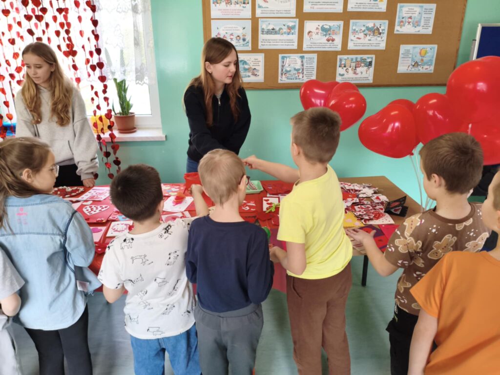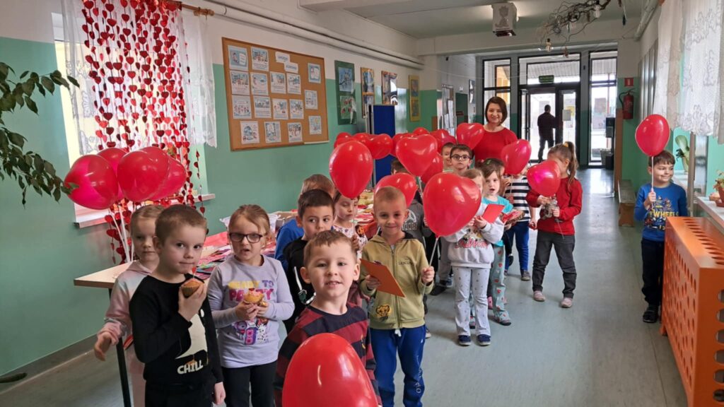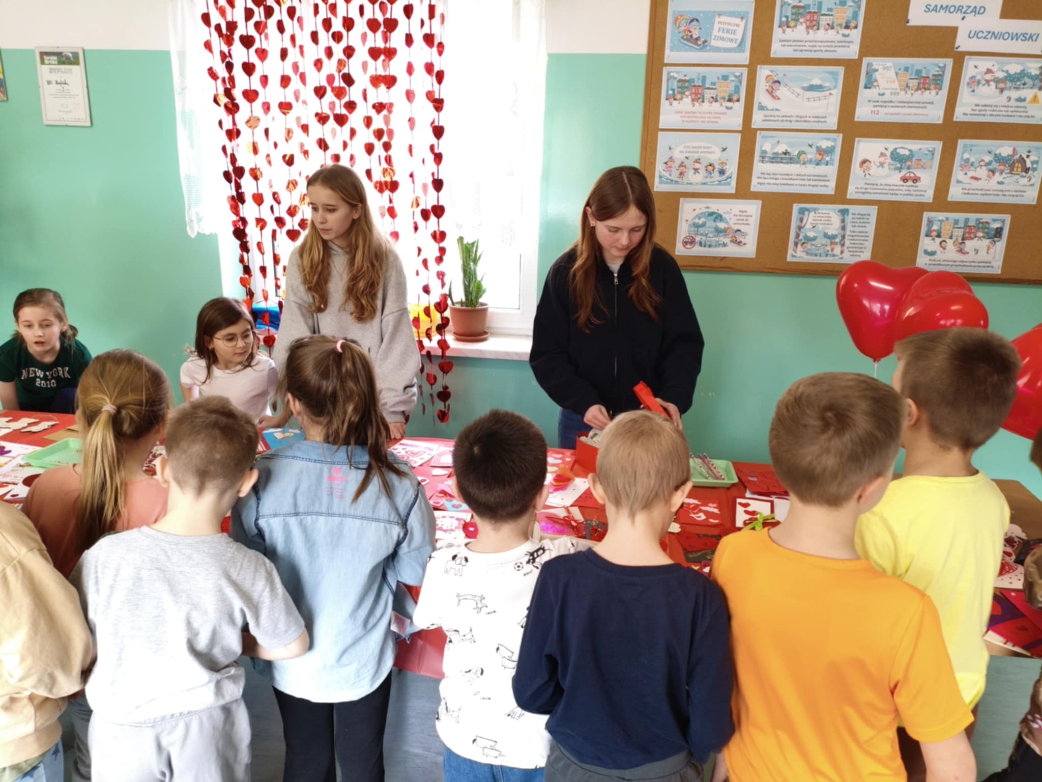 11 lutego 2026 roku w naszej szkole odbył się wyjątkowy Kiermasz Walentynkowy. Podczas, którego można było zakupić różnorodne gadżety walentynkowe. Największym zainteresowaniem cieszyły się piękne, ręcznie wykonane kartki walentynkowe, balony w kształcie serca oraz pyszne babeczki ozdobione lukrem. Nie zabrakło również drobnych upominków, które uczniowie chętnie wręczali swoim kolegom i koleżankom. Dzieci z ogromnym entuzjazmem podchodziły do stoiska, wybierając drobiazgi dla bliskich osób. Wydarzeniu towarzyszyła serdeczna atmosfera, a wspólne przygotowania i sprzedaż produktów były doskonałą okazją do integracji całej społeczności szkolnej. Najważniejszym celem kiermaszu była zbiórka środków na konkurs „Spółdzielnia Dobrych Serc”. Dochód ze sprzedaży zostanie przeznaczony na doposażenie szkolnego placu zabaw, aby stał się on jeszcze bardziej atrakcyjnym i bezpiecznym miejscem do wspólnej zabawy i aktywnego spędzania czasu. Kiermasz Walentynkowy okazał się wielkim sukcesem. Dzięki zaangażowaniu uczniów, nauczycieli oraz rodziców udało się nie tylko stworzyć piękne wydarzenie pełne życzliwości, ale także wesprzeć ważną inicjatywę. To był dzień pełen uśmiechu, współpracy i prawdziwego ducha wspólnoty.