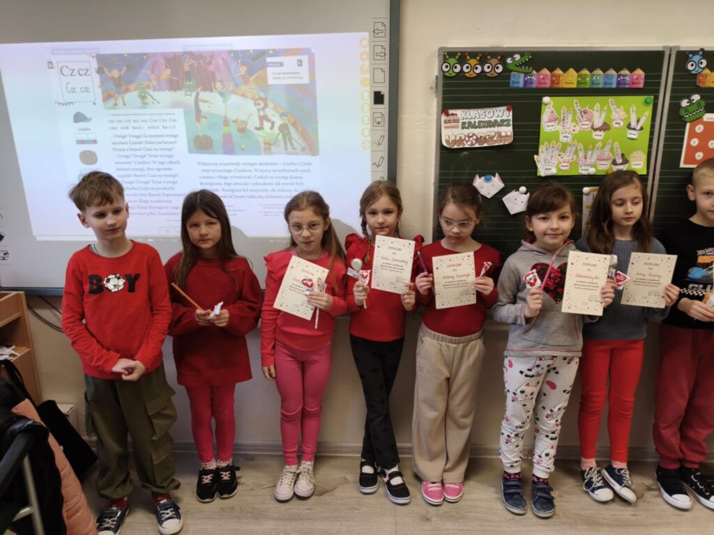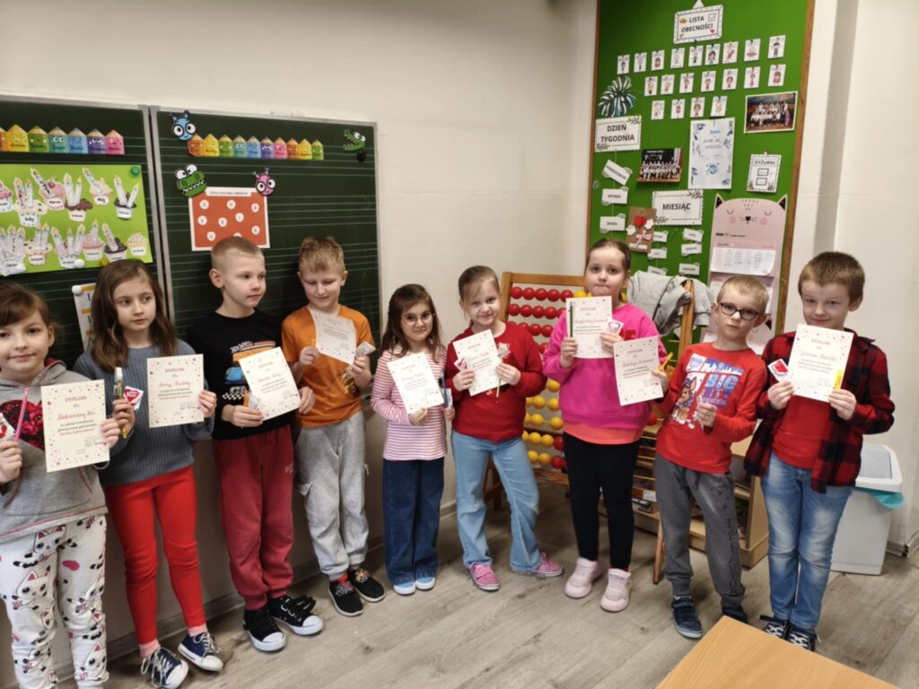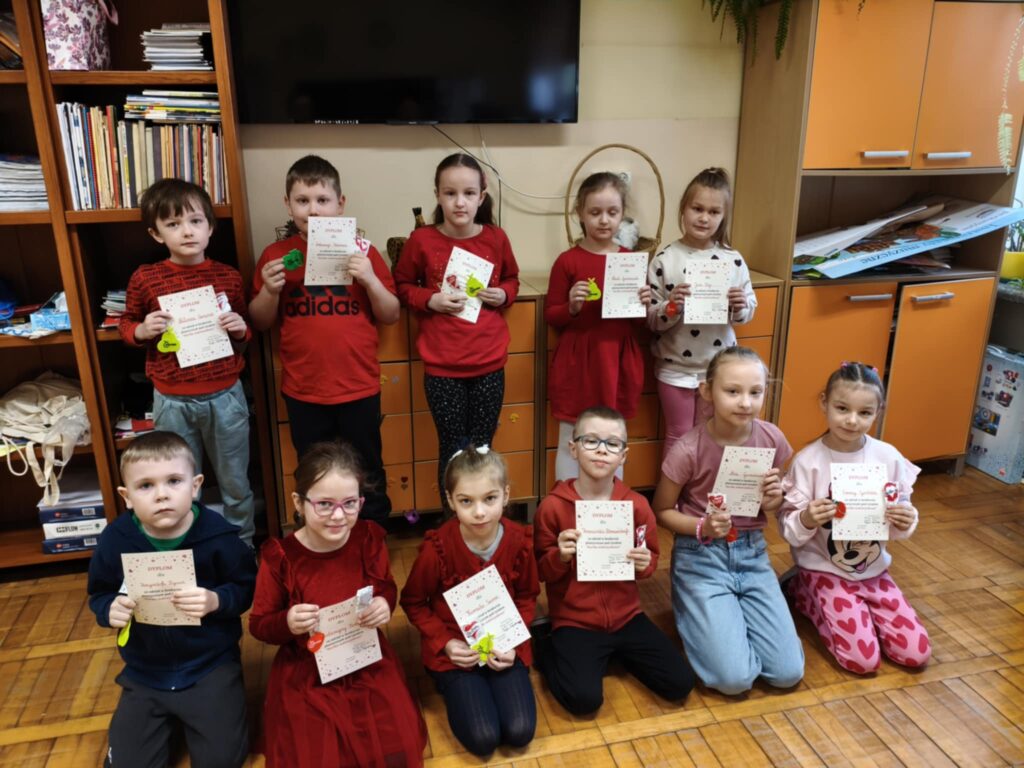 W naszej szkole został ogłoszony konkurs walentynkowy na najpiękniejszą, ręcznie wykonaną kartkę walentynkową. Inicjatywa skierowana była do uczniów klas I-III oraz dzieci z oddziałów przedszkolnych, którzy wykazali się kreatywnością, pomysłowością oraz sercem włożonym w przygotowanie wyjątkowej pracy. Technika wykonania kartek była dowolna – uczniowie mogli wykorzystać kredki, farby, bibułę, elementy przestrzenne czy inne materiały plastyczne. Wykonane prace zostały przeznaczone na sprzedaż w ramach konkursu „Spółdzielnia Dobrych Serc” podczas kiermaszu walentynkowego, który odbył się 11.02.2026 r. w naszej szkole. Dochód ze sprzedaży kartek wspiera działania mające na celu upiększenie i doposażenie szkolnego placu zabaw. Każdy uczestnik otrzymał nagrodę niespodziankę jako wyraz uznania za zaangażowanie i udział w konkursie. Dziękujemy wszystkim uczniom oraz rodzicom za wsparcie i aktywne włączenie się w akcję. Dzięki wspólnemu zaangażowaniu możemy razem tworzyć piękniejszą przestrzeń dla naszej szkolnej społeczności.