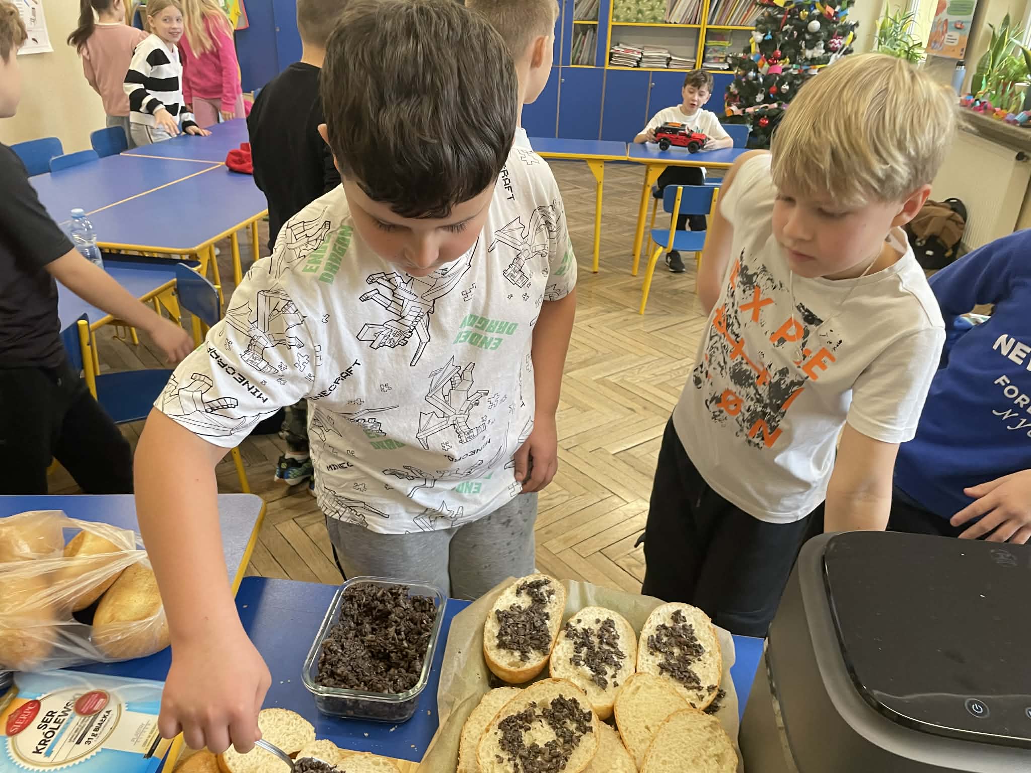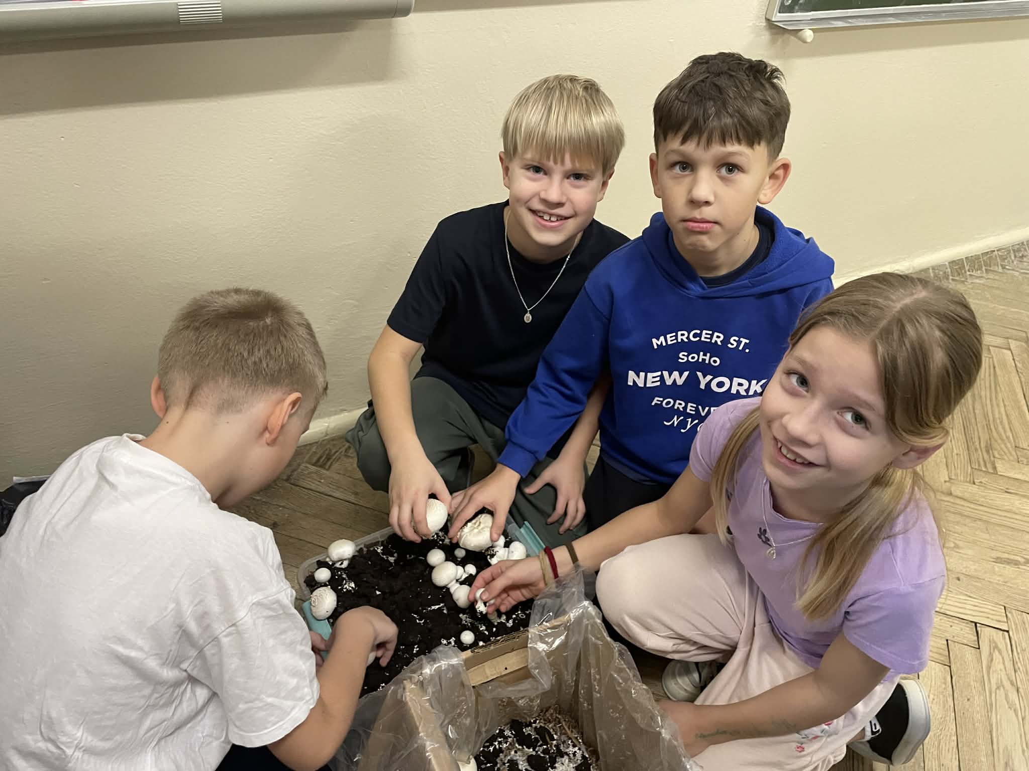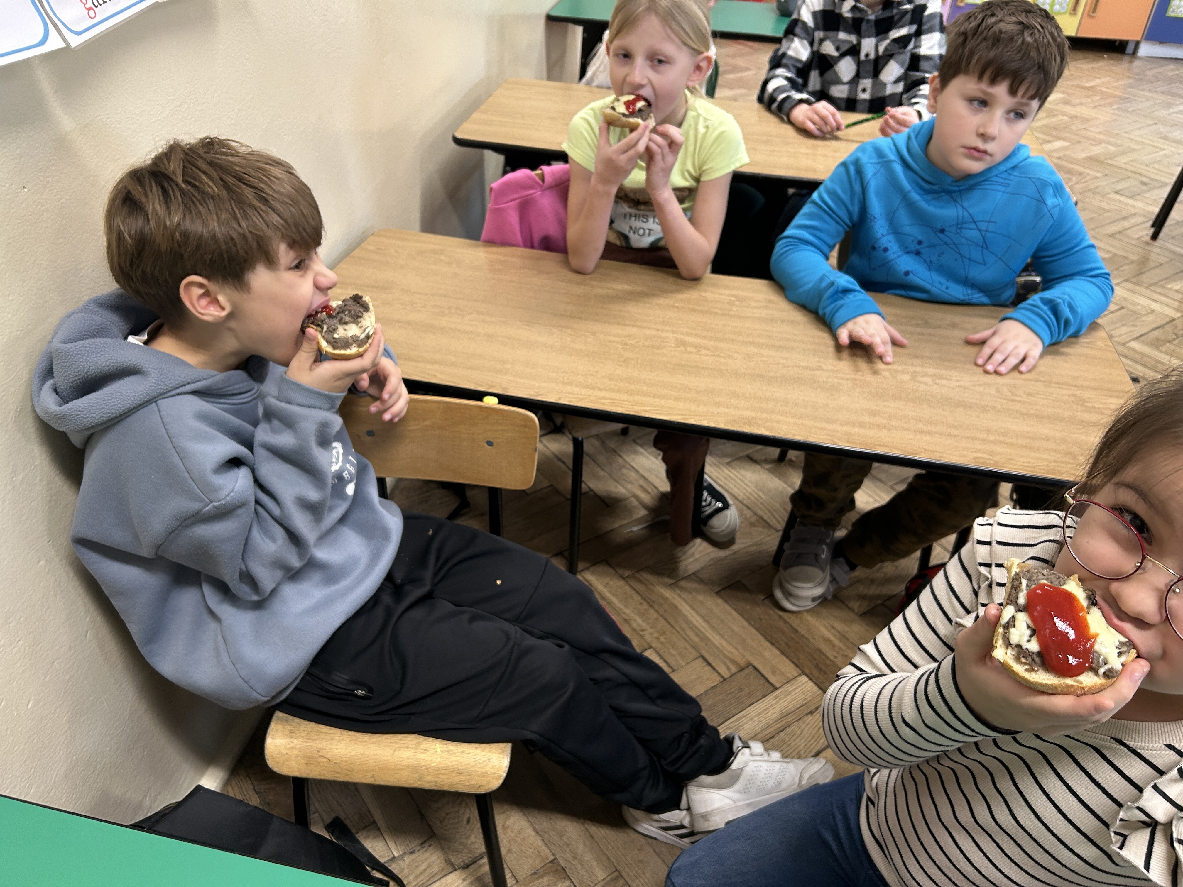 Uczniowie klas 2 i 3 wzięli udział w ogólnopolskim projekcie edukacyjnym „Pieczarki z klasą”, organizowanym przez firmę Agaris Myco Poland Sp. z o.o. Celem programu jest promowanie wśród dzieci i młodzieży wiedzy o pieczarkach oraz innych grzybach uprawnych, budowanie postaw ekologicznych, a także kształtowanie zdrowych nawyków żywieniowych. W ramach projektu uczniowie uprawiali pieczarki w swojej klasie, obserwując na bieżąco ich wzrost i rozwój. Dzięki zajęciom praktycznym mogli uczyć się poprzez zabawę i doświadczenie. Poznali cykl życia pieczarek oraz dowiedzieli się, jakie warunki są niezbędne do ich prawidłowej uprawy. Wspólna hodowla była doskonałą okazją do nauki odpowiedzialności, systematyczności i współpracy. Zwieńczeniem projektu było przygotowanie pysznych zapiekanek z własnoręcznie wyhodowanych pieczarek. Była to nie tylko smaczna nagroda za zaangażowanie, ale również praktyczna lekcja zdrowego odżywiania.
