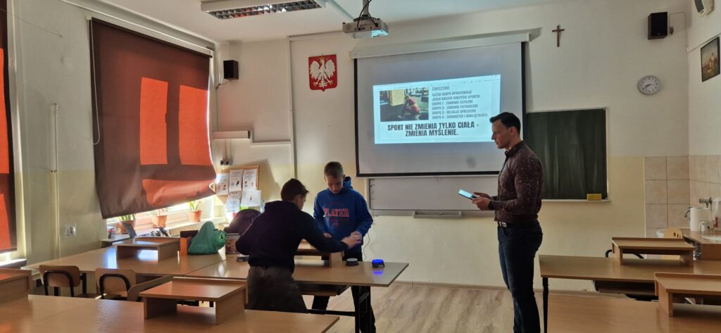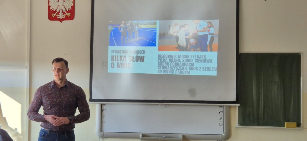 Uczniowie klasy 7b wzięli udział w spotkaniu z kierownikiem MOSiR w Leżajsku, Panem Sebastianem Padiasek. Wydarzenie odbyło się w ramach realizacji programu ” Trzymaj Formę „.Podczas spotkania rozmawiano o znaczeniu aktywności fizycznej i zdrowego stylu życia. Dziękujemy za cenną lekcję i inspirację do dbania o kondycję.