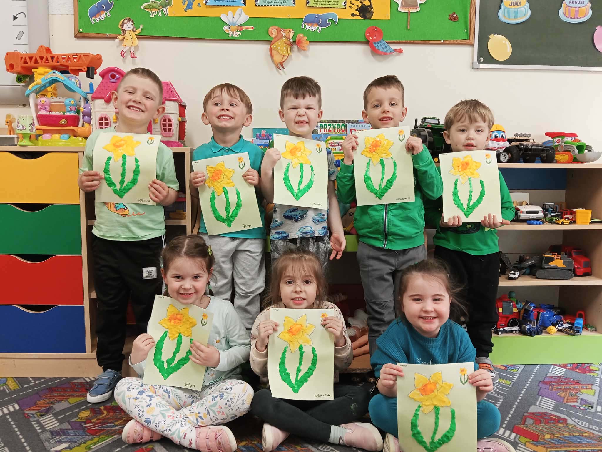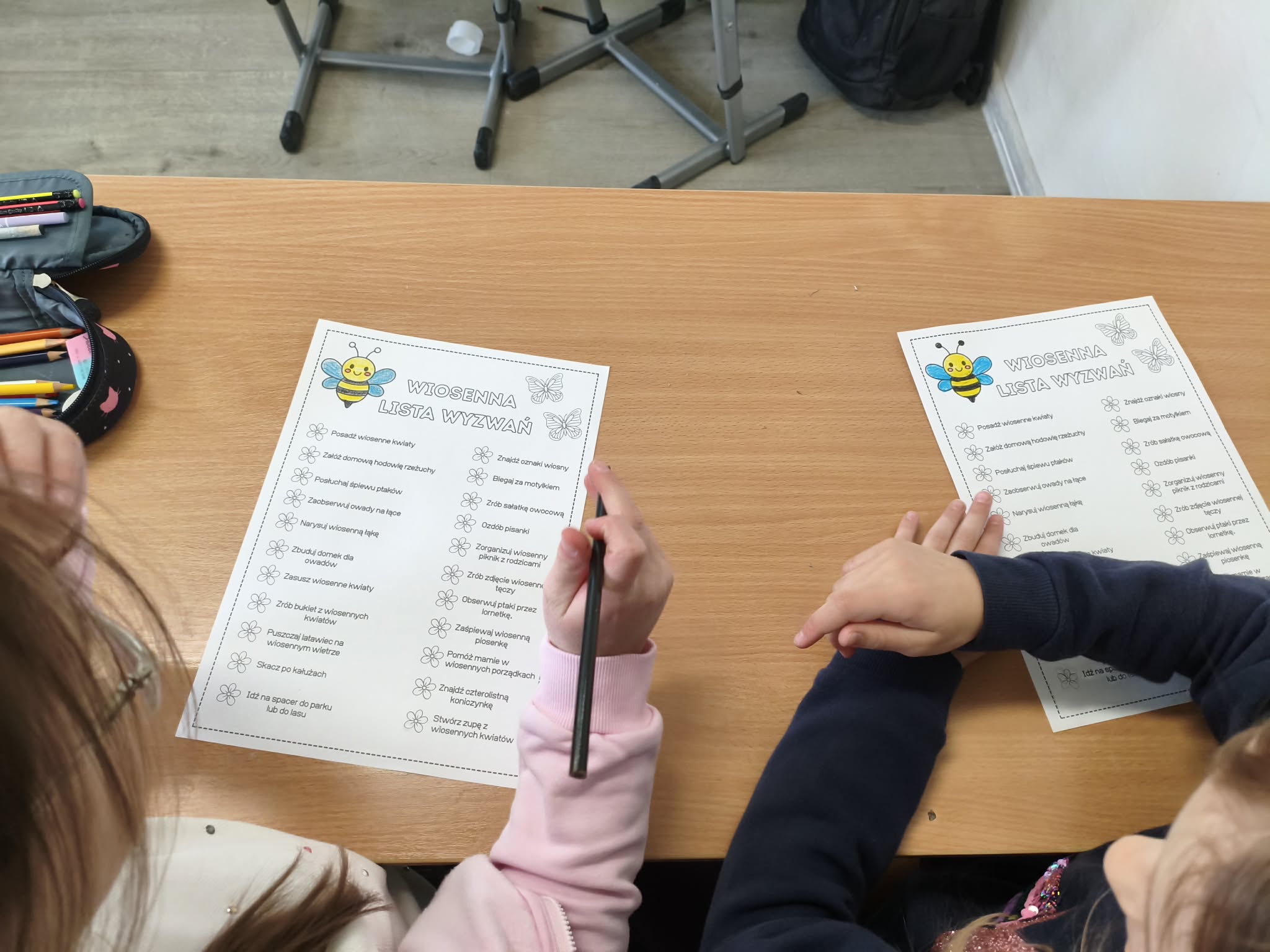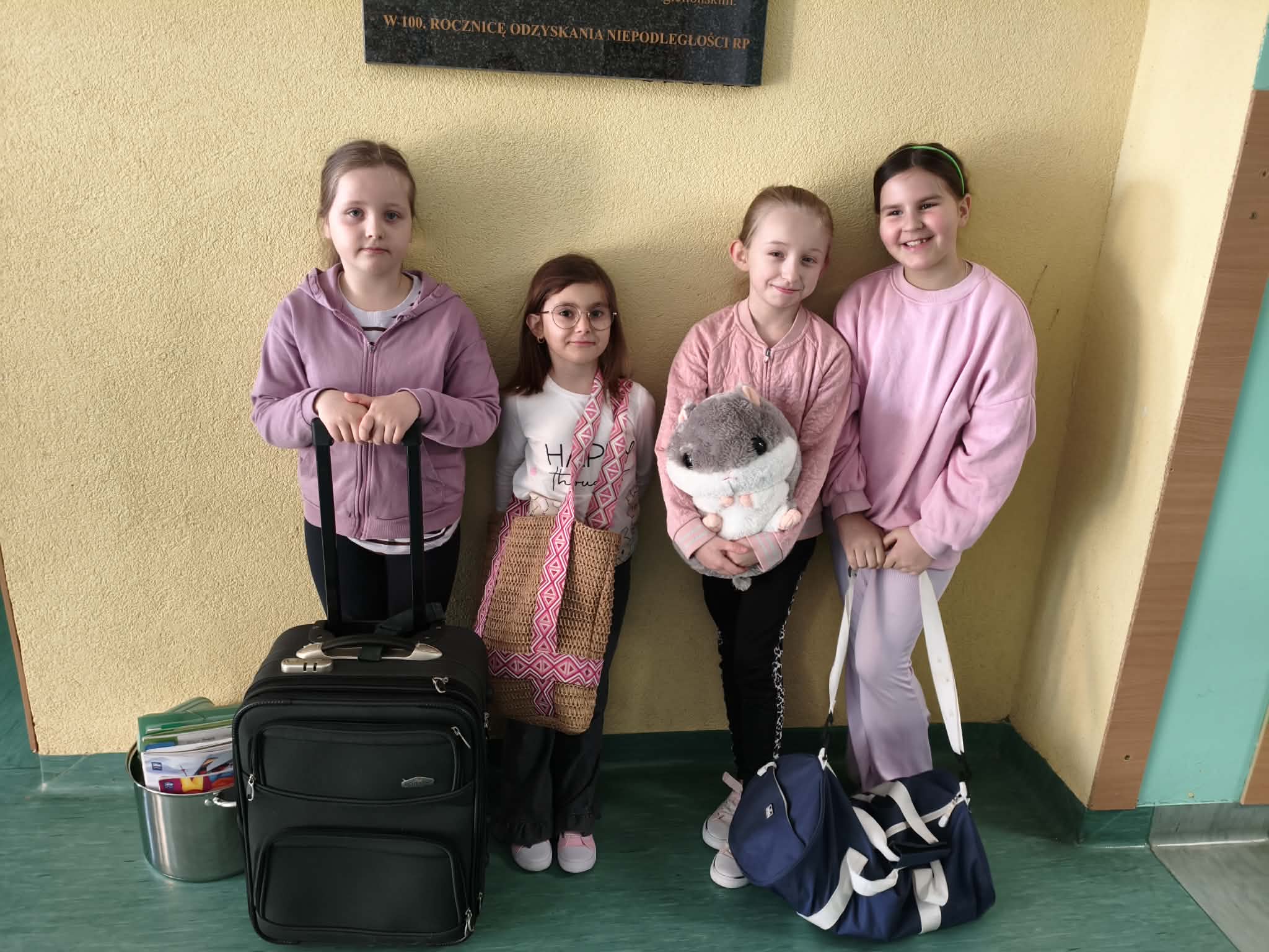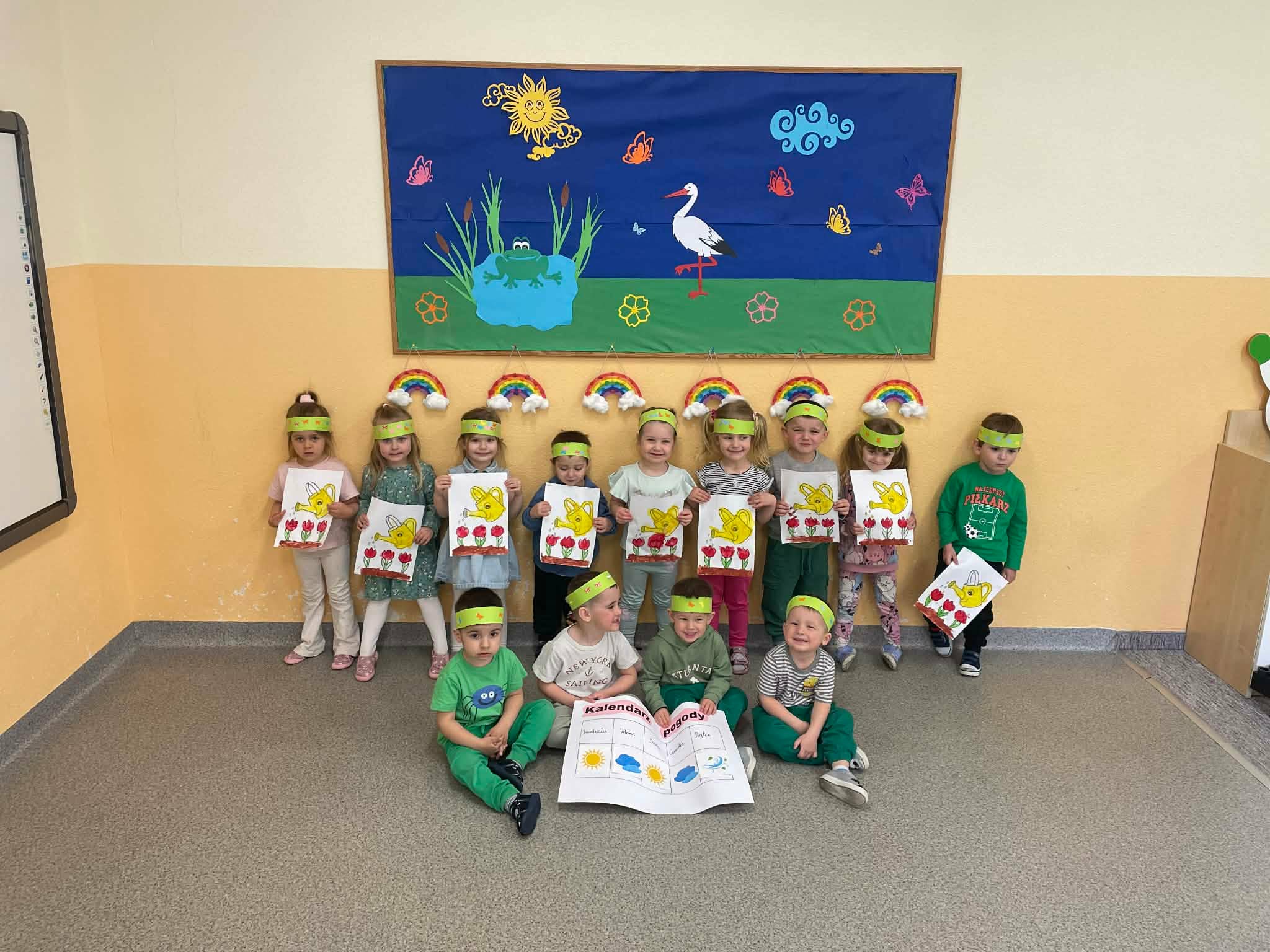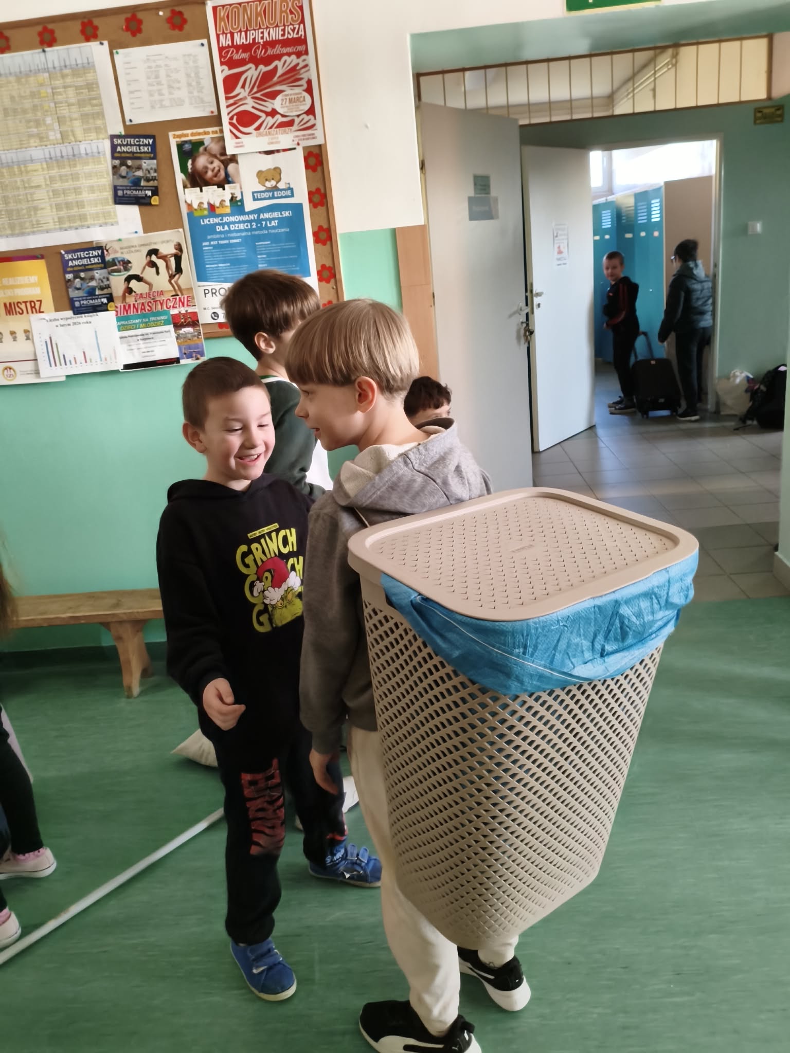 Pierwszy dzień wiosny w przedszkolu i klasach 1–3 był pełen radości, kolorów i ciekawych aktywności. Jednym z najważniejszych punktów dnia było sadzenie roślin. Dzieci z wielkim zaangażowaniem sadziły przygotowane wcześniej sadzonki. Każdy mógł poczuć się jak mały ogrodnik. Kolejnym elementem obchodów był wiosenny spacer z kolorowymi balonami w kształcie kwiatów. Uczniowie wyruszyli na poszukiwanie pierwszych oznak wiosny. Z ogromnym zainteresowaniem obserwowali budzącą się do życia przyrodę – wypatrywali pąków na drzewach, śpiewających ptaków oraz pierwszych kwiatów. Spacer był okazją do ruchu na świeżym powietrzu i rozwijania umiejętności uważnej obserwacji. Nie zabrakło także działań artystycznych. Dzieci wykonały różne prace wiosenne, kolorowe opaski, które ozdobiły motywami wiosennymi. W szkole odbyła się również akcja „Dzień bez plecaka – wrzuć piątaka”. Uczniowie wykazali się pomysłowością, przynosząc swoje książki i przybory w nietypowych „zastępnikach” plecaków. Wydarzenie miało nie tylko humorystyczny charakter, ale także wymiar społeczny – zebrane środki zostały przeznaczone na konkurs „Talentowisko”.