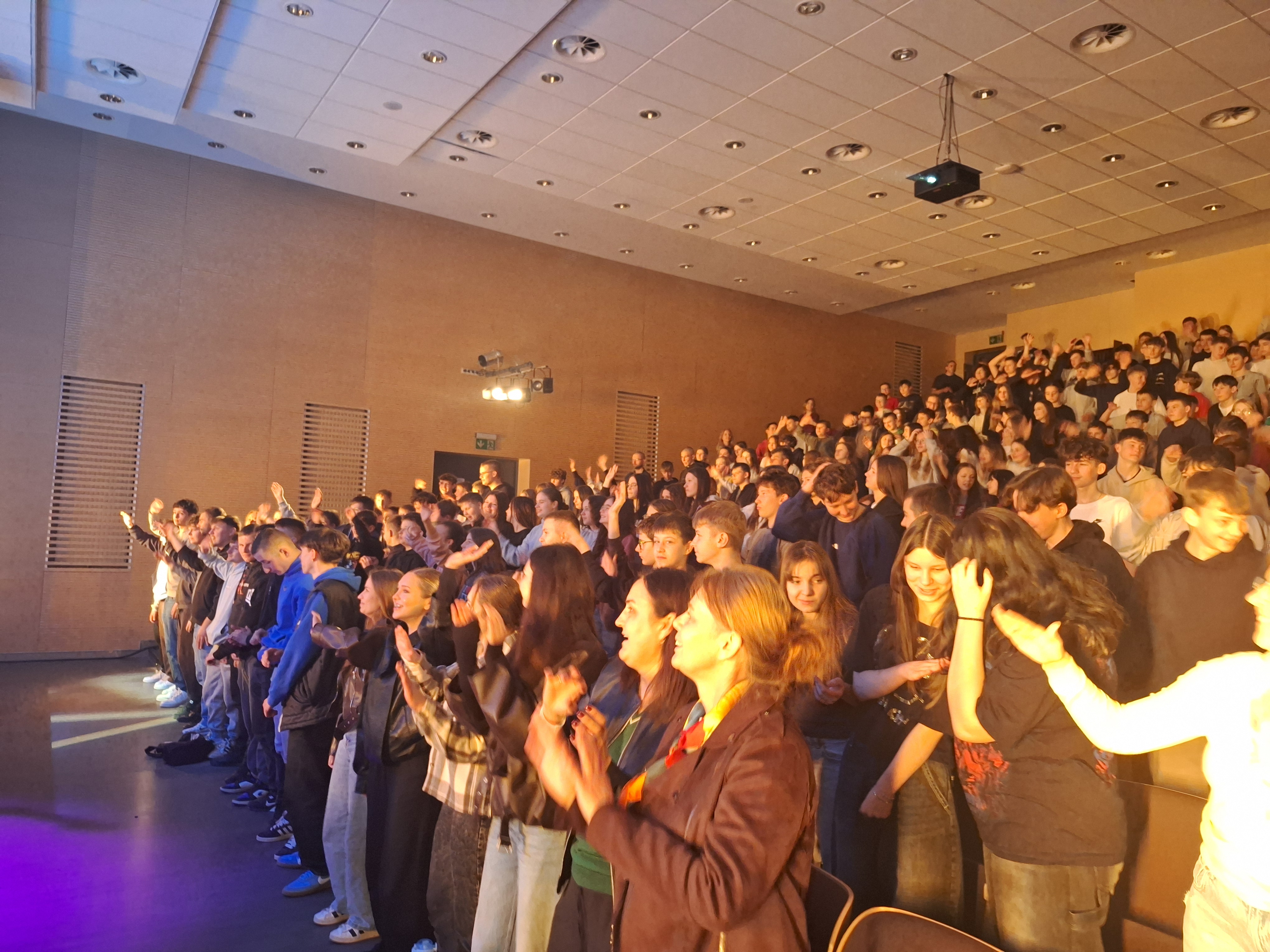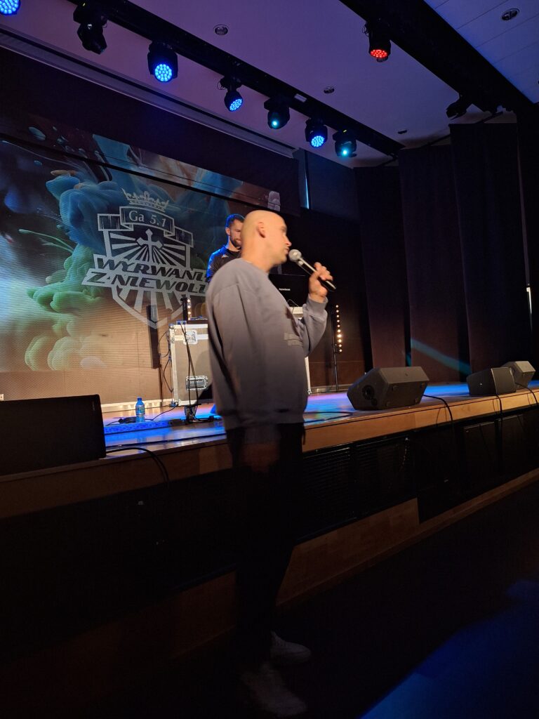 Dnia 14 marca 2026 r. uczniowie z klasy 8 oraz 7 A i 7 B wzięli udział w koncercie grupy: „Wyrwani z Niewoli”, który miał miejsce we Franciszkańskim Ośrodku Kultury w Leżajsku funkcjonującym przy zgromadzeniu Ojców Bernardynów. Koncert był jednym z cyklu wydarzeń w ramach Festiwalu Kultury Chrześcijańskiej: „Odkryj życie z pasją” realizowanym w dniach 08.03 -26.05.2026 r. Młodzież pod opieką Pani Dyrektor – Janiny Paja, Pani Pedagog – Aleksandry Śliwa, Pani Jadwigi Marczak – Szpyt oraz ks. Pawła Franusa miała okazję nie tylko posłuchać utworów muzycznych w rytmie rapu, ale także świadectwa nawrócenia i wychodzenia z nałogów, uzależnień Piotra Zalewskiego oraz Jacka „Heresa” Zajkowskiego – twórców zespołu. Nie zabrakło także tematyki funkcjonowania młodzieży w sieci oraz pułapek z tym związanych. Ważną częścią koncertu była interakcja ze słuchaczami poprzez świadectwa młodzieży na koniec oraz aktywizacje sceniczne, mające na celu ukazanie presji grupy wobec jednostki. Ufamy, że nasi uczniowie zapamiętali nie tylko dobrą muzykę, ale także ludzi, którzy pomimo wielu ograniczeń i błędów odmienili swoje życie na pełne pasji.
