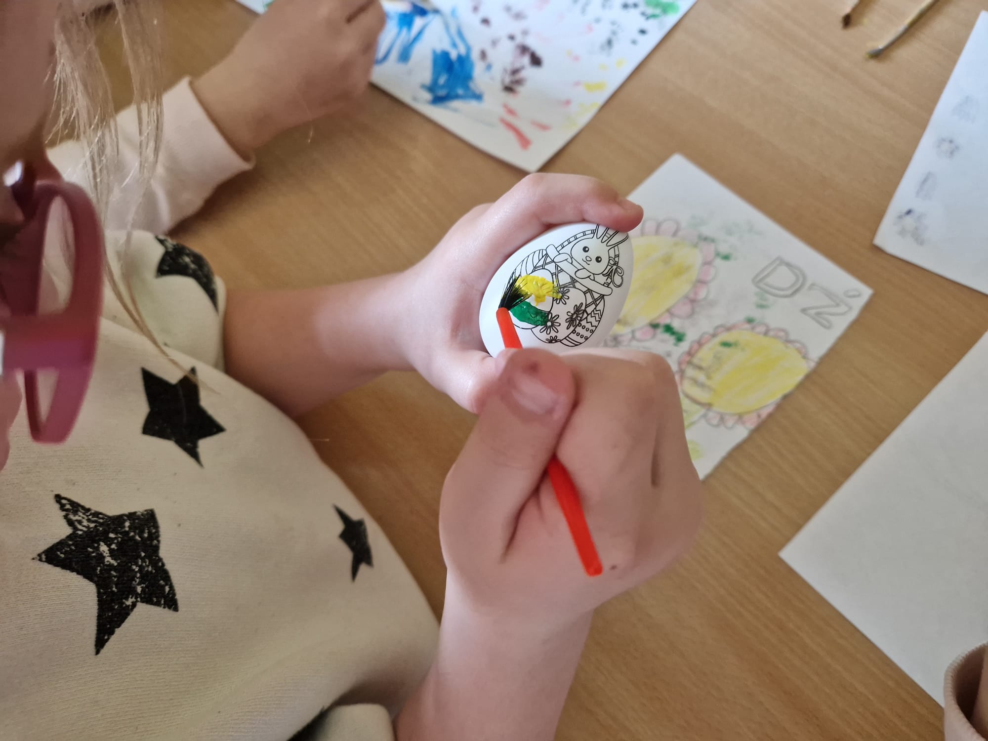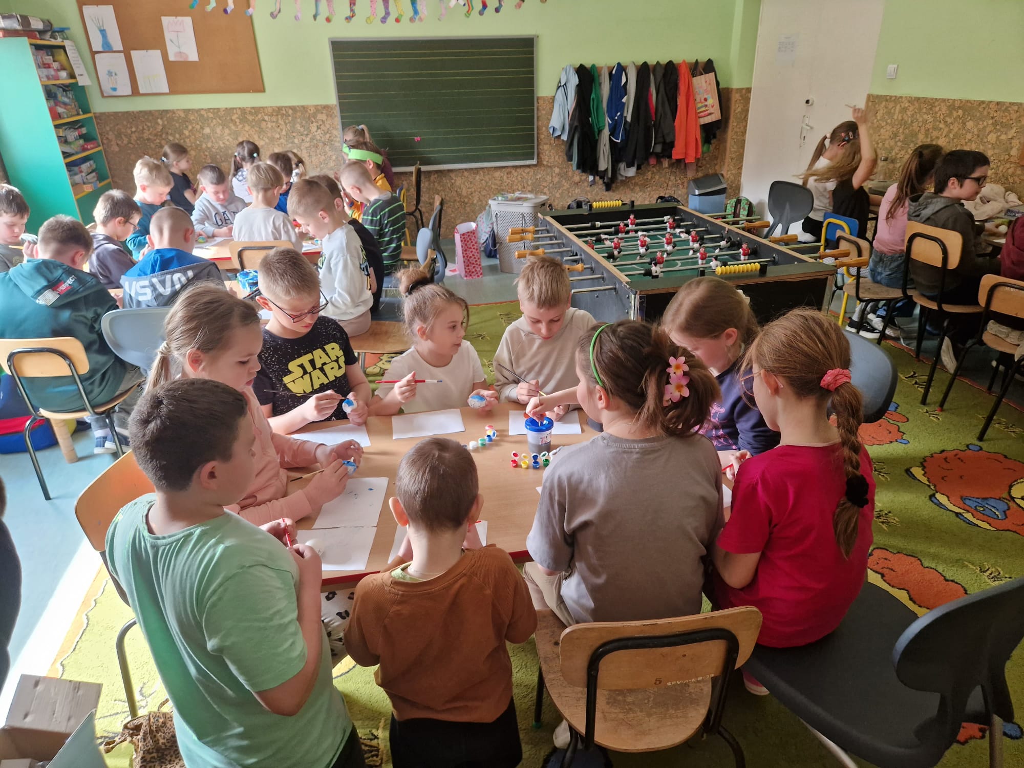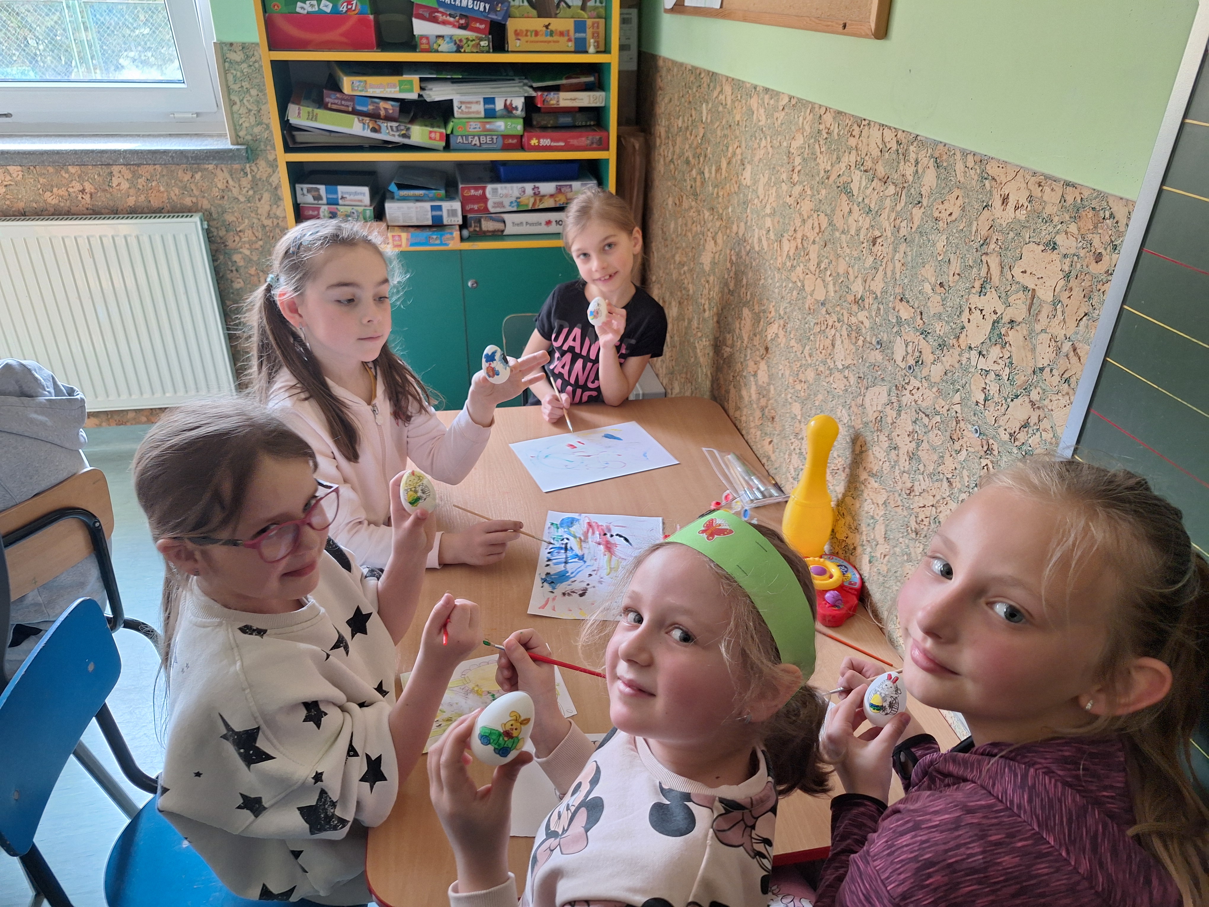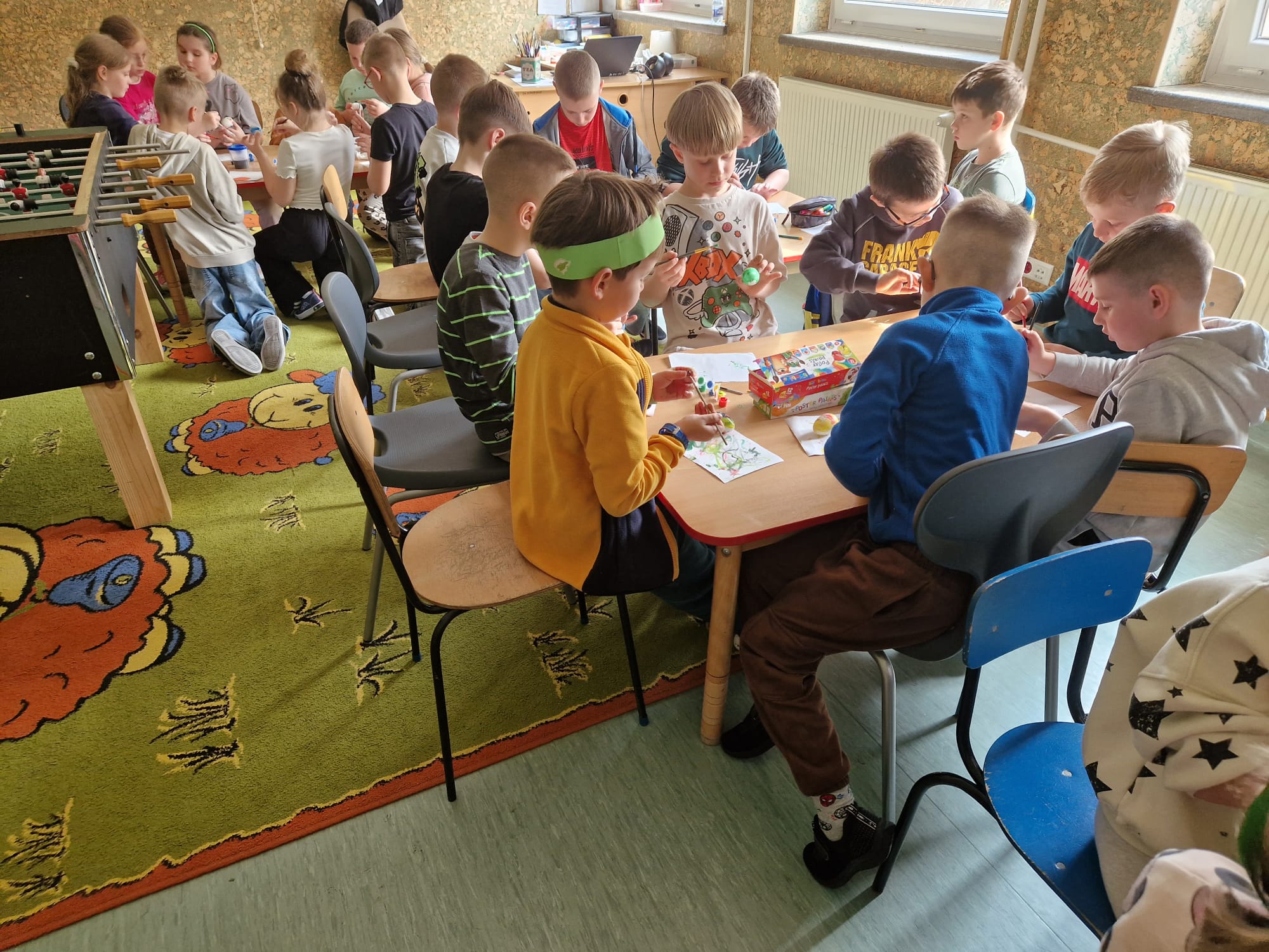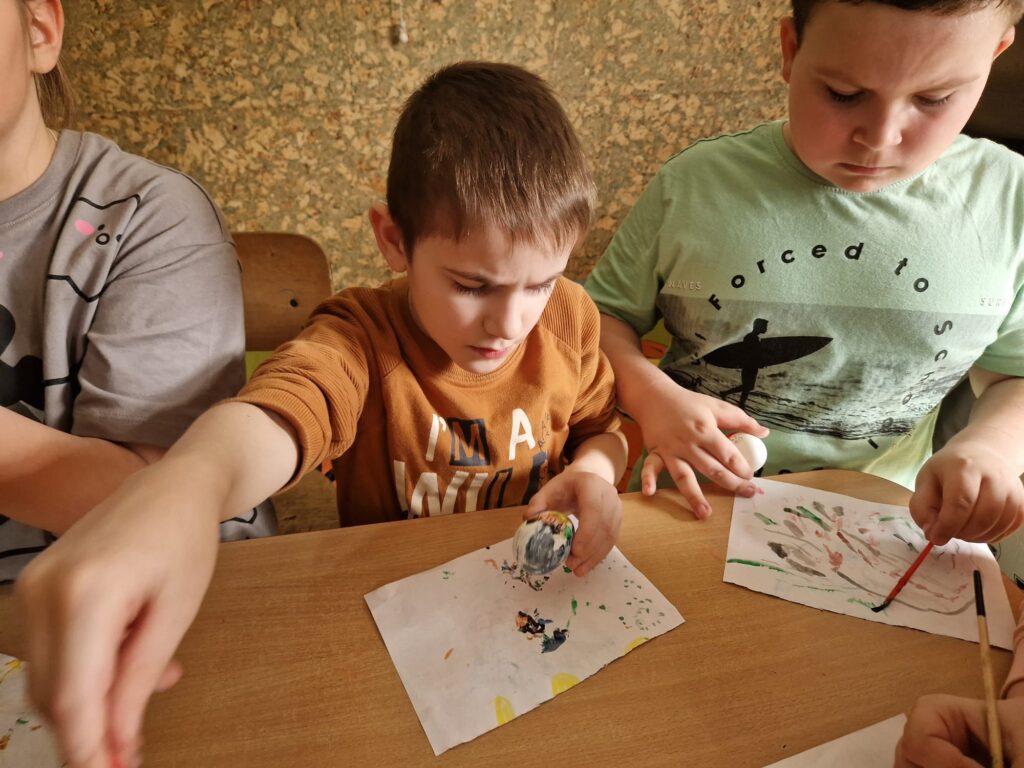W ostatnim tygodniu przed świętami Wielkanocnymi uczniowie świetlicy szkolnej uczestniczyli w zajęciach plastycznych o tematyce wielkanocnej. Uczniowie malowali pisanki wielkanocne, samodzielnie dobierając kolory i wzory, dzięki czemu każda z nich była niepowtarzalna. Podczas kolejnych zajęć wykonali wielkanocne kurczaczki, kolorowe ozdoby, które pięknie wpisują się w świąteczny wystrój. Zajęcia były okazją do kultywowania rodzimych tradycji, rozwijania kreatywności oraz zdolności manualnych. Każdy uczestnik zabrał do domu własnoręcznie wykonane prace.
