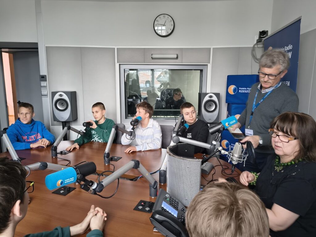 Uczniowie klasy 7b wzięli udział w warsztatach w Radio Rzeszów, gdzie mieli okazję zapoznać się z pracą dziennikarza radiowego, poznając techniki prowadzenia audycji, przygotowania materiałów i pracy w studio radiowym. Ponadto zwiedzili salę koncertową, w której odbywają się nagrania i występy artystyczne. Duże wrażenie zrobiło nocne studio nagrań, gdzie realizowane są audycje radiowe. Uczniowie poznali również, czym jest amplifikatornia oraz jaką pełni rolę w funkcjonowaniu radia. Dowiedzieli się, jak ważna jest odpowiednia jakość dźwięku i jak wiele urządzeń jest potrzebnych, aby audycje mogły być nadawane. Najciekawszym momentem warsztatów była wizyta w studio emisyjnym i obserwacja audycji na żywo oraz możliwość rozmowy w czasie rzeczywistym. Przed wizytą w radio byliśmy na kręgielni. Wspólna gra w kręgle sprzyjała integracji oraz zdrowej