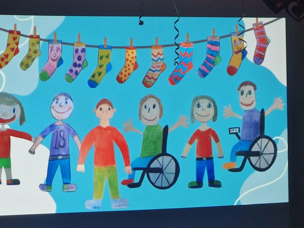 W związku ze Światowym Dniem Zespołu Downa oraz Kolorowej Skarpetki w nasze szkole odbył się dzień profilaktyki oraz pogłębiania wiedzy. Uczniowie na korytarzu szkolnym spotkali się klasami, aby wysłuchać prelekcji pedagoga specjalnego i zapoznać się z osobami dotkniętymi zespołem Downa poprzez filmy edukacyjne, zapoznali się na świetlicy z ideą kolorowych skarpetek i stworzyli sznur kolorowych skarpet, który symbolizuje ten Dzień na całym świecie.